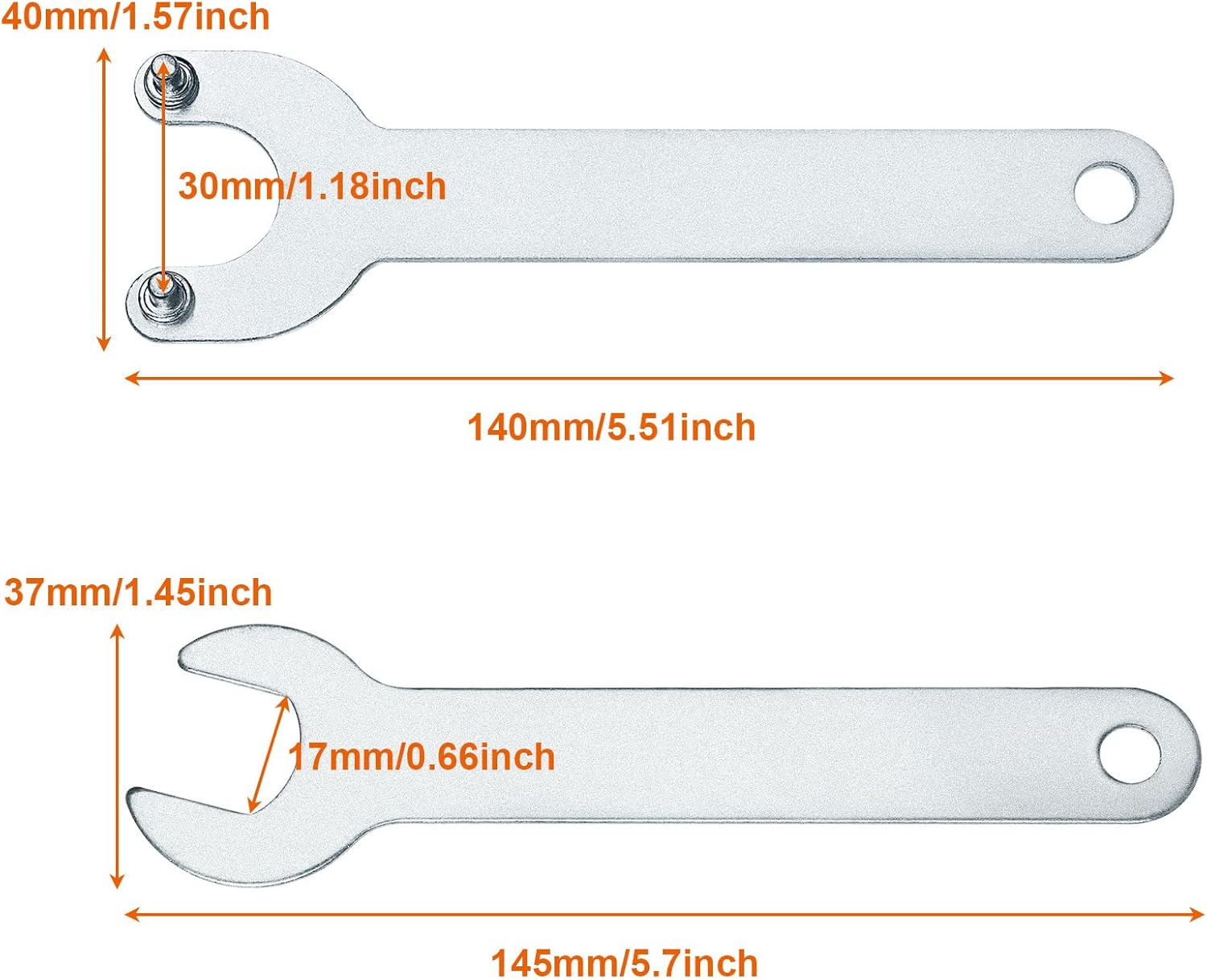 The angle grinder flange nuts 5/8-11 inch fit most small angle grinders and includes 2 spanner wrench to securely tighten it to your tool Angle grinder accessories: Spanner: 5.5”/ 140mm length Outer diameter: 0.55”/ 14mm Inner diameter: 0.61”/ 15.5mm Package includes: 6 x Inner angle grinder flange nut 6 x Outer angle grinder flange nut 2 x Spanner wrench Look over your grinder and find the info on the tool Find the size for your flange nut before purchase, please, compatible models may include Dewalt Milwaukee Makita 193465-4, Bosch, Black & Decker Ryobi 9029, 9069, 9016DB, 9047L, 9558NB, 9557PB, GA5020 10.5A 5" SJS, 9565PC 5" SJS, 9554NB, 9015A, and more.