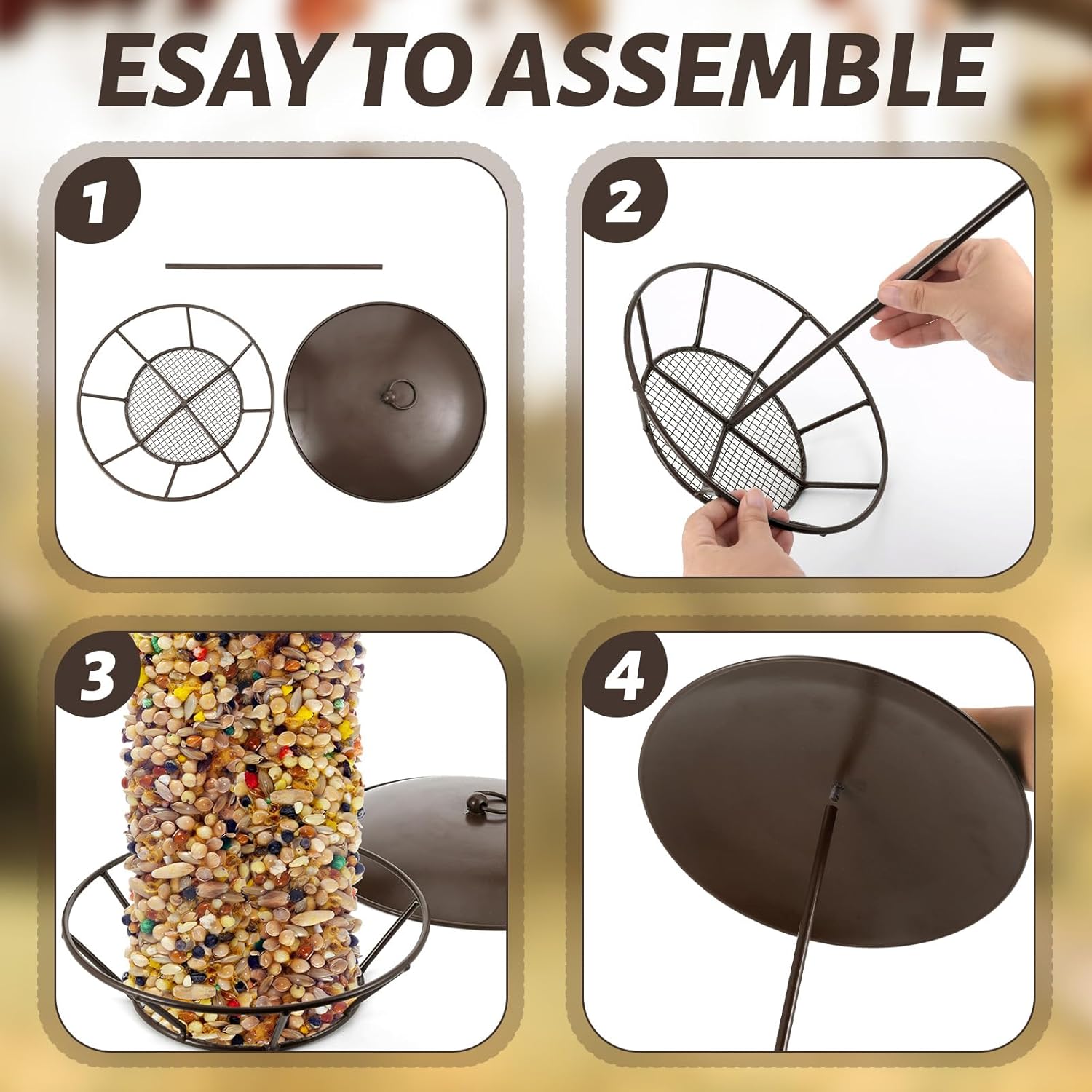 Cylinder Suet Cake Bird Feeder S-6-2 Seed Cake Bird Feeder Antique Copper Metal Feeders for Outdoor Garden Hanging Yard Decoration Wild Birdfeeding Features: Easy Assembly: The bird feeder consists of a metal cover, tray, and iron pipe, simply screw both ends of the long pipe into the metal cover and the base to assemble. Wide Usages: Our cylinder feeder is excellent for attracting wild birds, especially those that love to climb and perch, it also makes a wonderful gift for bird enthusiasts. Specifications: Color: Antique Copper Material: Metal Size: One Size Package includes: 2 x Cylinder Suet Cake Bird Feeder Note: The colors may exist slight difference due to different screens. Manual measurement, please allow slight errors on size.