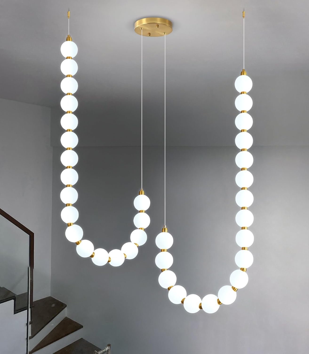 2 Ring Modern Chandeliers Acrylic Balls Ceiling Pendant Lighting LED Dimmable Light for Living Room Foyer Dining Room Entryway Adjustable Hanging Lights Gold