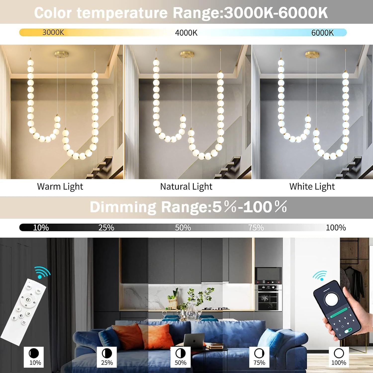 | Light Color | Adjustable White (2700K, 4000K, 6000K) and other colors |
