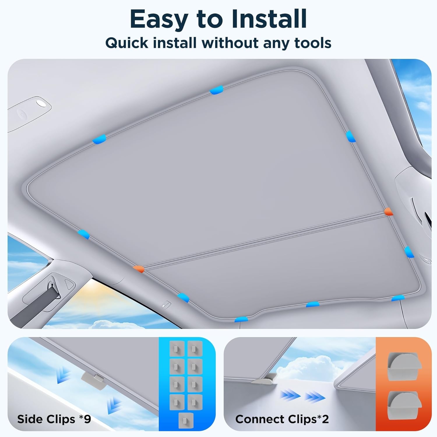 | Included Components | 1* Front Roof Sunshade ,1* Rear Roof Sunshade, 10* Clips, 1* Storage Bag, 1* Manual |