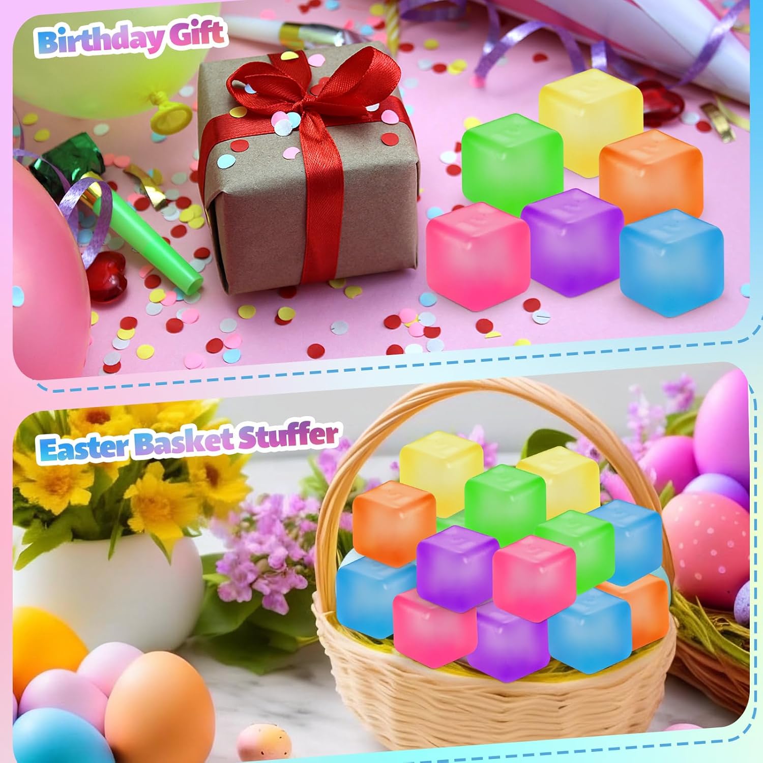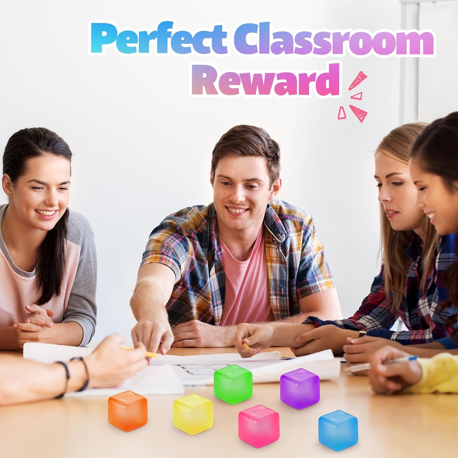 Features: Versatile Use for All Ages: From classrooms to offices, these bulk stress balls cater to a wide audience. They function as both autism sensory aids and general tools, supporting focus and emotional. Their simplicity and functionality make them suitable for various settings and age groups. Reliable Everyday Companion: Made for repeated use, these cube stress balls retain their shape and texture over time. The resilient material ensures long-lasting performance, providing consistent sensory input. Whether applied individually or in groups, they deliver steady support for managing stress. Specifications: Material: leak proof materials Color: blue, pink, purple, green, yellow, and orange Size: 1.38inches/3.5cm Package includes: 24 x Stress cube Notes: Manual measurement, please allow slight errors on size. The color may exist a slight difference due to different screen displays