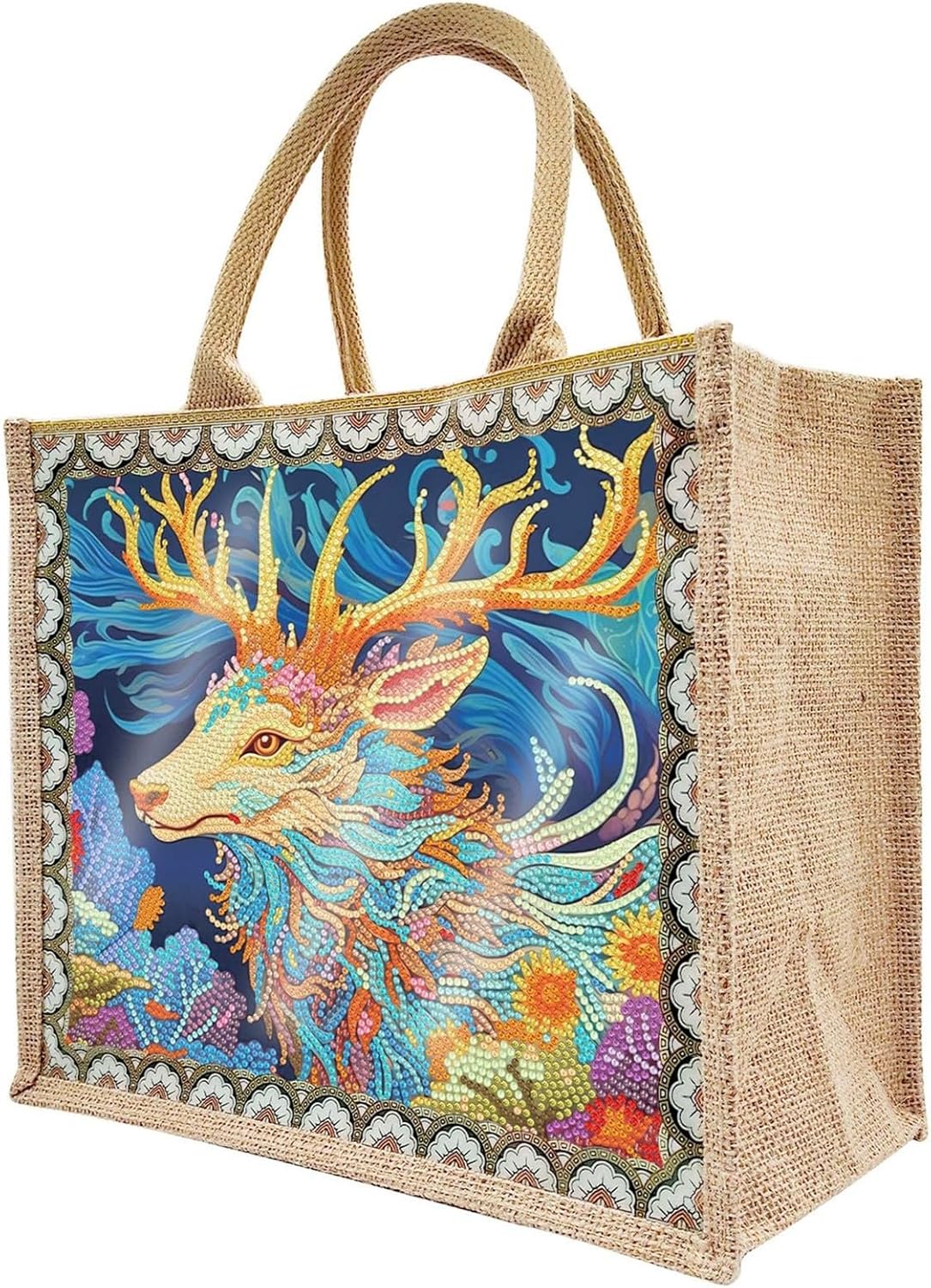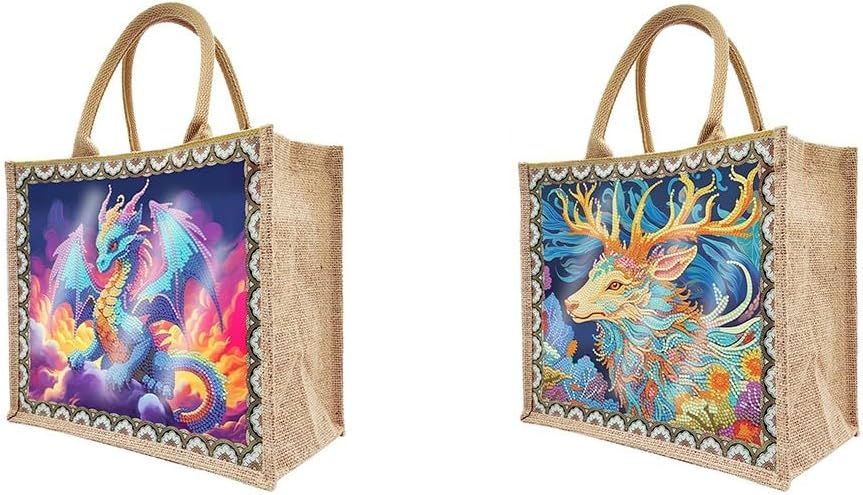 Product Name:DIY Dot Diamond Environmental Protection Bag Creative 5d Animal Cartoon Handbag (Single Side Dot Diamond)Product size: as shown in the pictureProduct material: linenColor: linen light yellowProduct packaging: opp bagThe product includes: canvas*2(You Can Replace It As You Like), burlap bag*1, drilling bag*1, point drilling tool bag*1Purpose: Light, portable, suitable for carrying when going out, going to work. DIY diamond art painting production steps:1. Open the package and check whether the diamond art painting tools are complete;2. According to the resin diamond color coding, select a color on the plate. If you paste the same color at one time, the speed can be increased;3. Find the corresponding color code on the canvas and start pasting until completed;4. After completion, in order to make the diamond art painting stable, you can put some books on the canvas for a while;5. Finally done.Notice:This is diy diamond art painting, it is not finished, you need to finish it yourself. All products are measured by hand, please allow 1-2cm deviation.