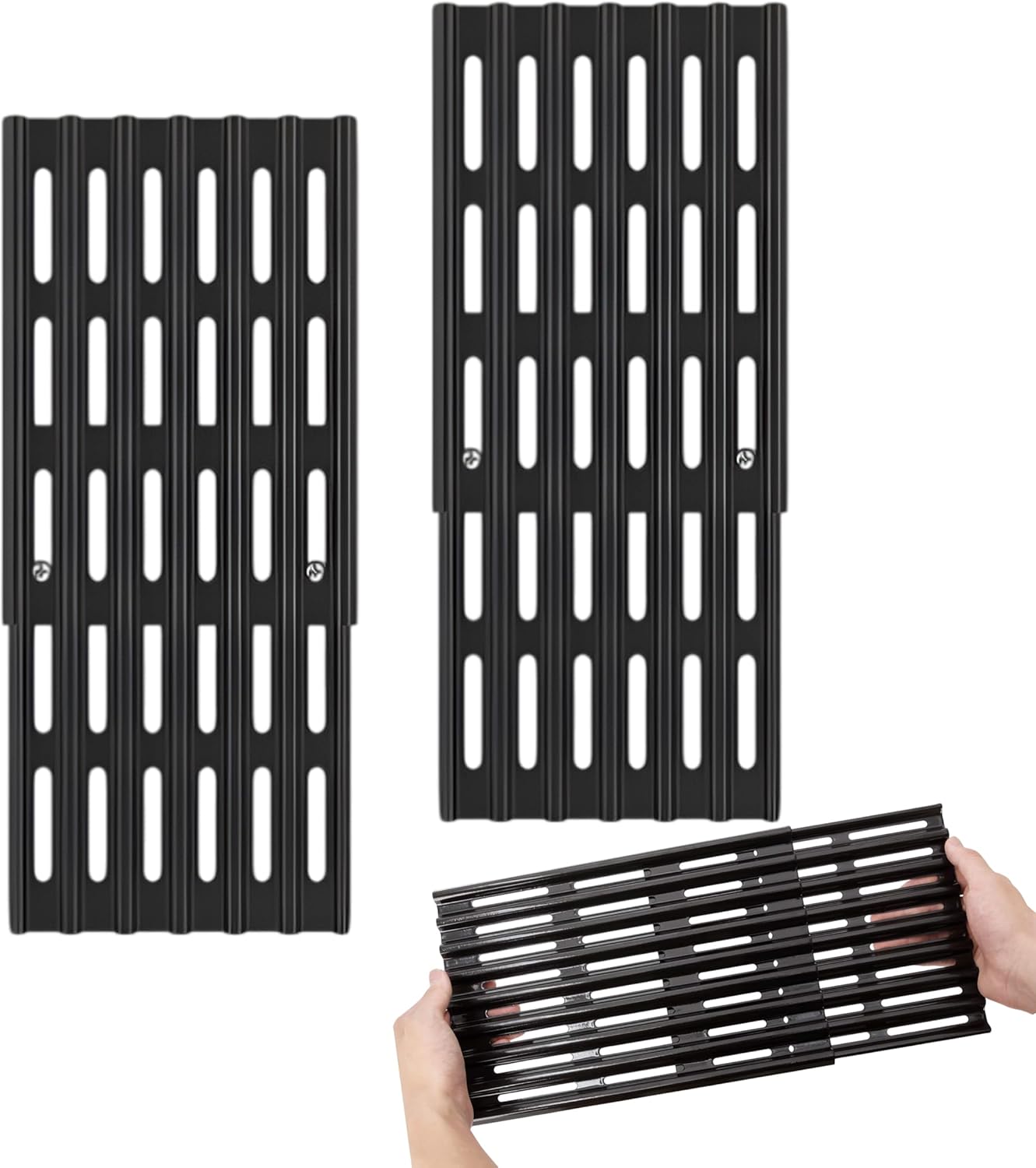 This set includes 3 adjustable universal grill cooking grates, each 8 inches wide. The depth of each grate can be adjusted between 12 inches to 19 inches, offering a total width coverage of 24 inches with all 3 grids. These replacement grill grates are designed to fit a wide variety of grill models, including grills from well-known brands such as Brinkmann, Nexgrill, Expert Grill, Dyna Glo, Charbroil, Ken more, Backyard Grill, BHG, Weber, BBQ Pro, and many others. Before ordering, it is recommended to measure your original cooking grate to ensure a perfect fit for your grill model. The innovative 2025 design makes assembly and adjustment easier than before. Each grate comes in two pieces that you can assemble to the required depth using the included hardware. This design provides enhanced flexibility, a more secure fit, and smoother size adjustments. Made of high-quality porcelain-coated steel, these grates are built to last, offering excellent heat retention and even cooking. They are also easy to clean, making them a great choice for hassle-free grilling. Great replacement grate/ grid at an affordable price.