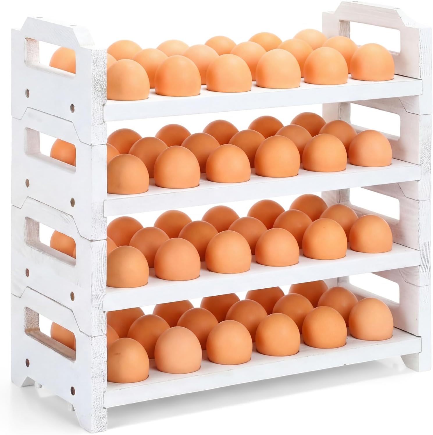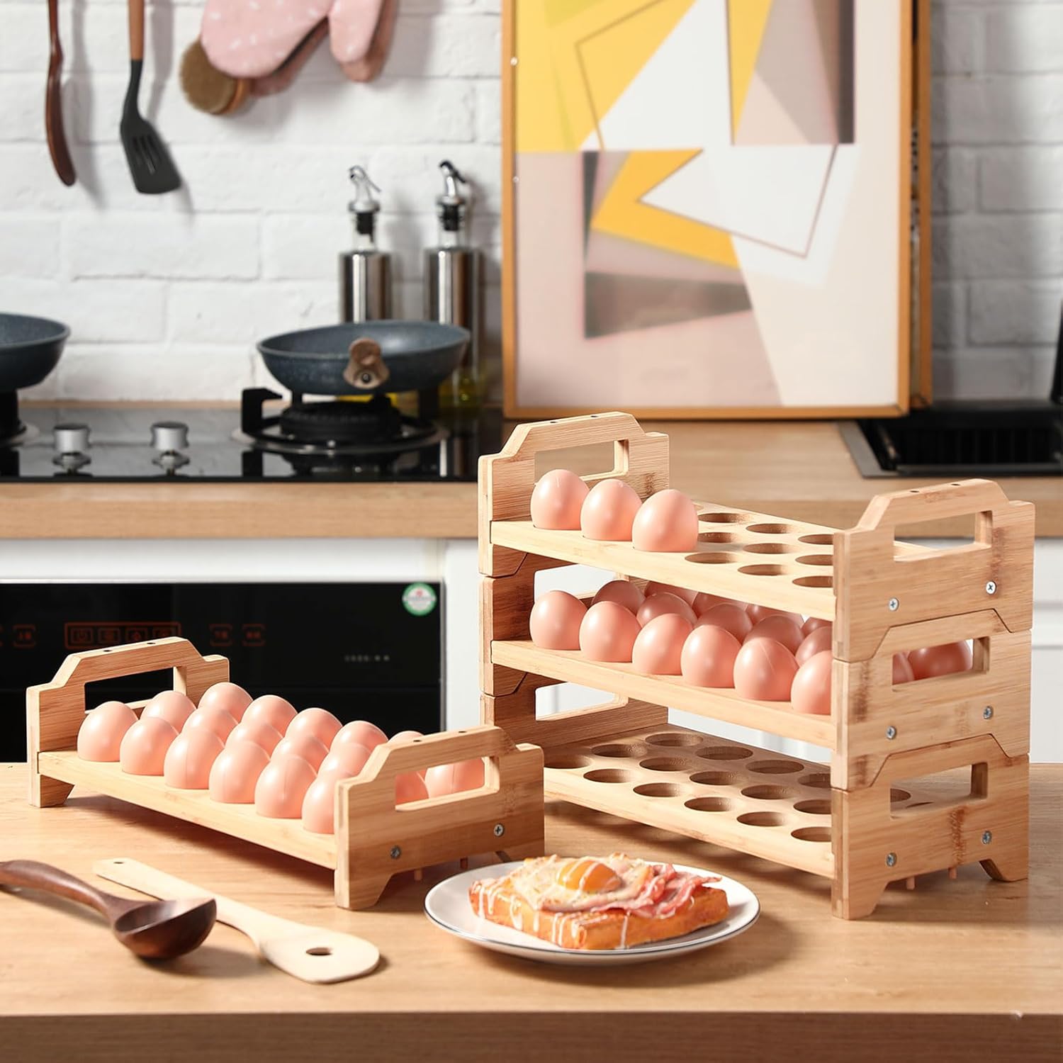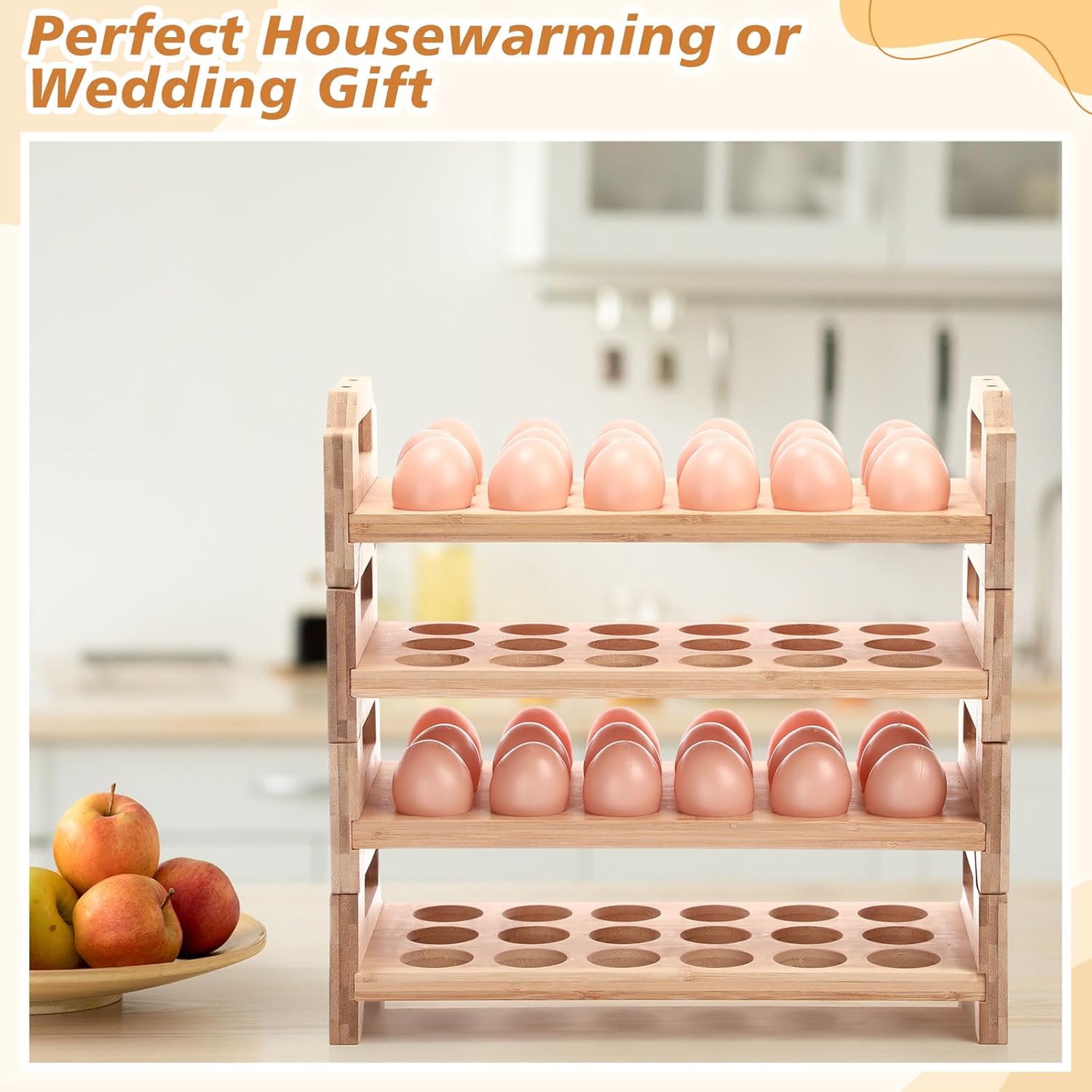 Keep your fresh eggs neatly organized and within easy reach with this 4-tier bamboo egg holder. Made from premium natural bamboo, this rack is perfect for farmhouse kitchens, countertop display, or pantry storage. Its vertical design saves space while offering an impressive capacity—ideal for families, homesteaders, or backyard farmers. Each tier holds up to 18 eggs, storing a total of 72 eggs. Compatible with various egg sizes such as chicken, duck, and turkey eggs. This stylish rack not only keeps your eggs fresh and visible but also adds rustic charm to your kitchen decoration. No assembly required—simply place it on your counter and start organizing. Key Features: 4 Tier vertical design for maximum egg storage Made from sturdy and eco-friendly natural bamboo Holds up to 72 eggs (18 per layer) Fits various egg sizes – chicken, duck, turkey Space-saving and decorative for countertops or pantries Package Includes: 1 X 4 Tier Bamboo Egg Holder (pre-assembled) Usage Tips: Hand-wipe with a damp cloth to clean. Avoid soaking in water Store in a dry place away from direct sunlight Place heavier eggs on lower tiers for improved balance