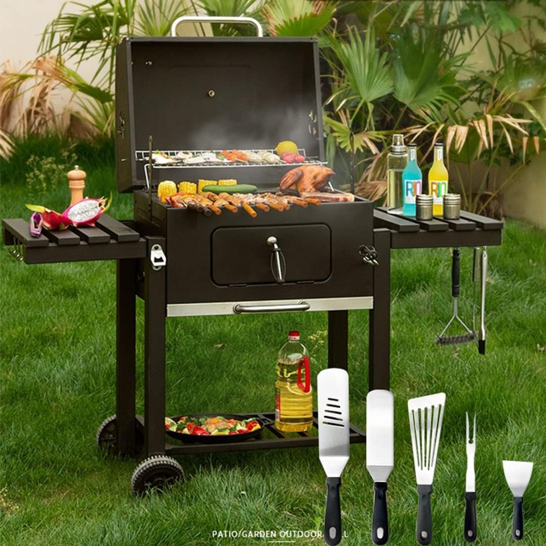 Why Choose JM MD COLTD 45PCS Grill Tools Set? Strict Quality Inspection: JM MD COLTD grill accessories must go through strict quality inspection before its ready for packaging to make sure all the bbq tools in a solid construction and perfect condition to meet the customer’s daily using requirement. Long-Lasting Performance: This set of 45 barbecue tools features heavy duty stainless steel for ultimate durability, so you won’t have to worry about rusting, cracking or melting while grilling and will last for a long time. High Quality BBQ Tools Kit Package includes: 2* long pancake turner, 1* hamburger press, 1* meat fork 1* small square spatula 1* food clip 8* barbecue skewers 10* hanging meat hooks 2* seasoning jars 4* corn holder 4* omelette mould 1* brush 1* scissors 1* gloves 2 *200 ml squeeze bottles 1* dough cutter 1* scrubbing sponge 1* seasoning syringe 1*pot lid 1*storage bag 1*packing box ~ Thank you for visiting JM MD COLTD store.