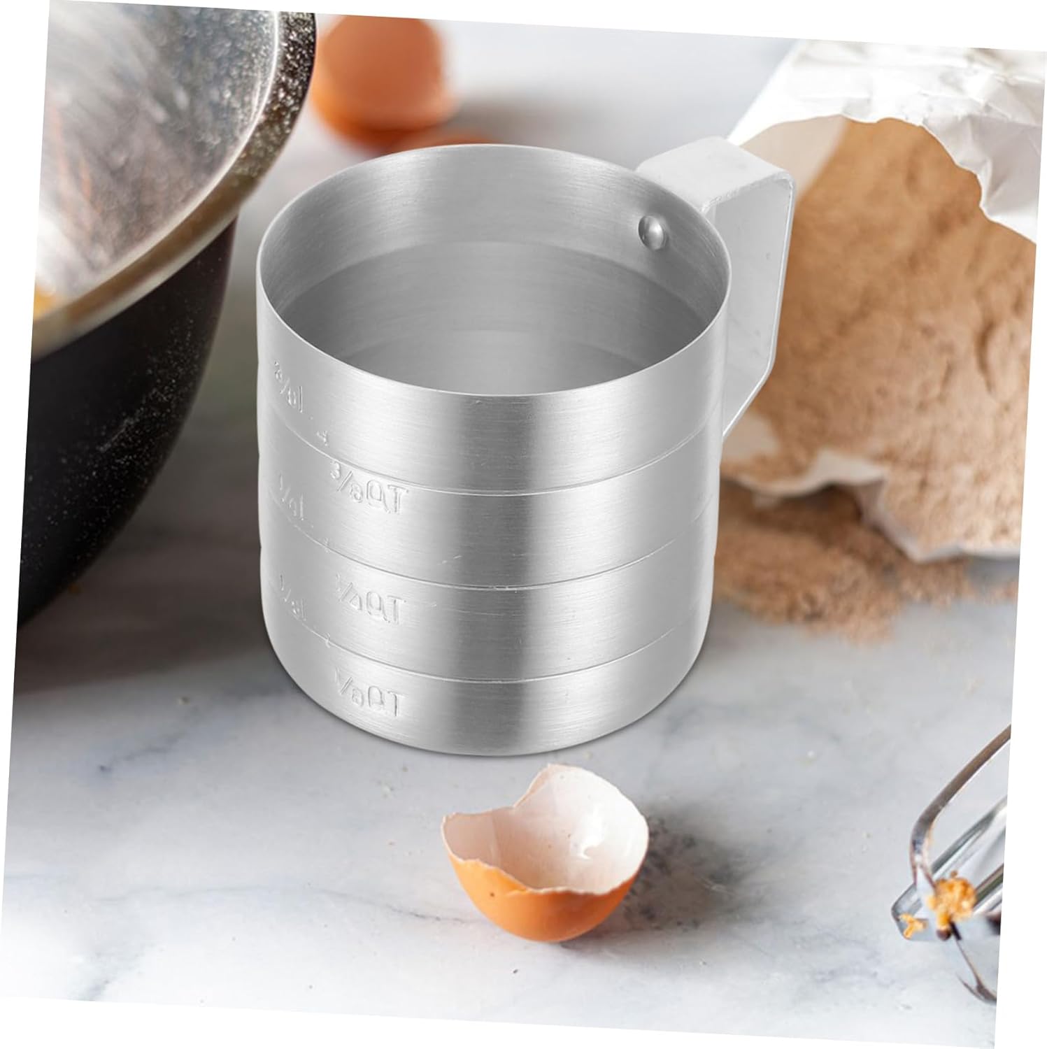 Package Include 4 x measuring cup Features -Size:11.50X8.70X8.50cm/4.52X3.42X3.34in wash rice measuring cup -Color:Silver measuring cup with scale -Capacity: 500ml measurement cups -Material:Aluminum measuring tool for cooking -Convenient measurements for your kitchen, cooking, drinking or more usage measuring cups. -Precise measurement, convenient to use. Very simple to read , simple to control the dosage measuring tool kitchen. -Manufactured with aluminum material which is wear-resistant and shocking-proof kitchen measuring cup. -It is a simple but sturdy utility measuring tool for home, kitchen, hotel and restaurant food measuring cups. -Measuring Cup with comfortable handle, fits hand feel, easy and convenient to hold measuring mixing cup.Goods Informationwash rice measuring cup Made of aluminum material for to use.measuring tool for cooking The cup with scale can be a good tool in your kitchen, bring much convenience to you.baking measuring cups Perfect for different kinds of beverages both, like water, tea, coffee, milk, juice, etc.measuring cup scale Easy to clean, just use water to wash it regularly
