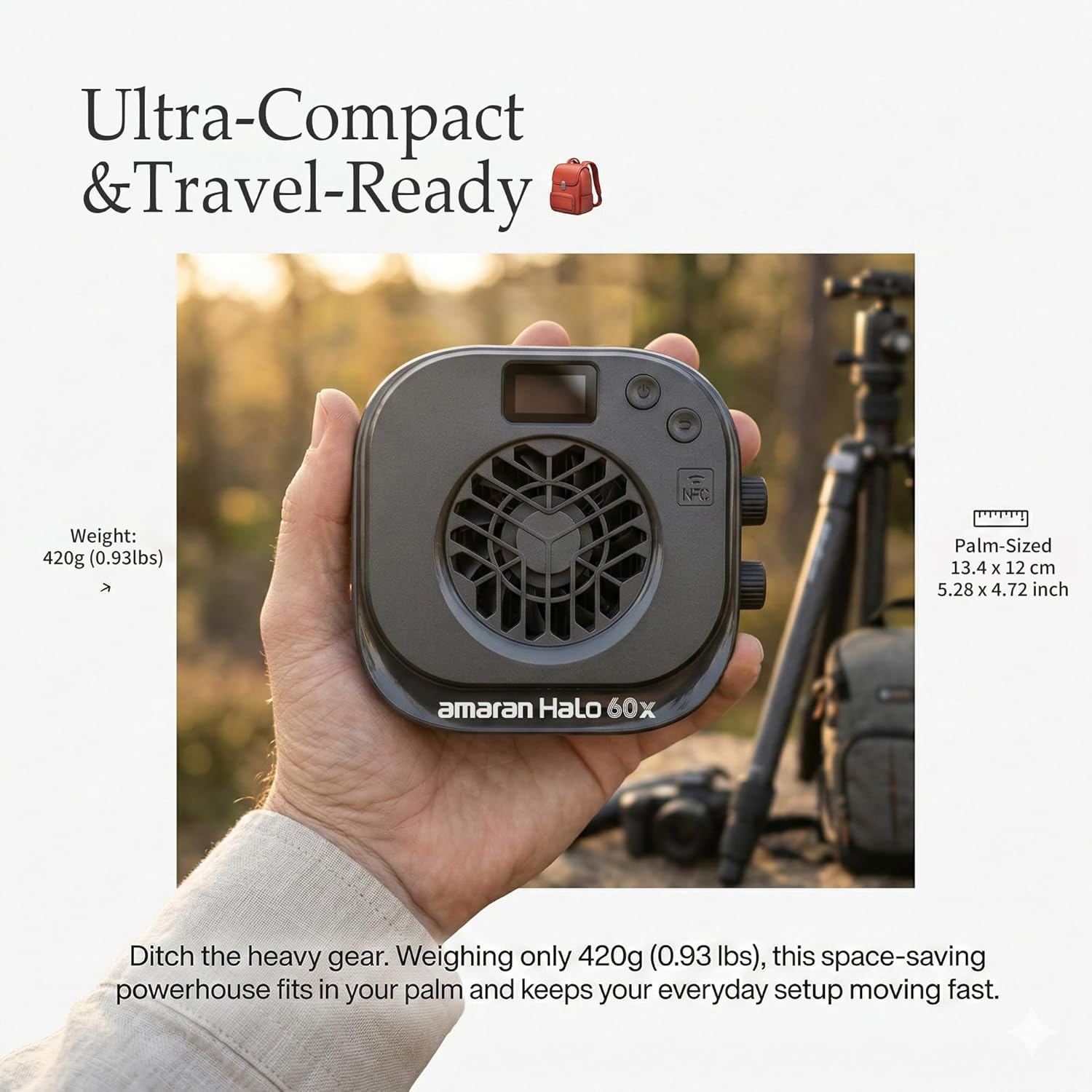 | BuiltIn Media | 1x amaran 1/4-20in to Baby Pin Adapter with Tilt, 1x amaran AC to USB-C 65W Power Adapter (2.5m), 1x amaran Halo 60x, 1x amaran IEC C5 AC Power Cable (2m) |