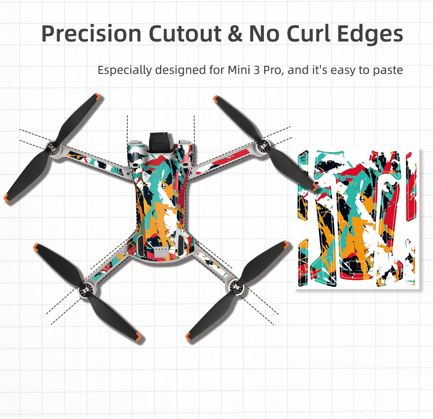 Anbee Mini 3 Pro Drone Waterproof Decal Easy Paste PVC Skin Bubble Free Decorative Stickers Set Compatible with DJI Mini 3 Pro RC Quadcopter and Remote Controller