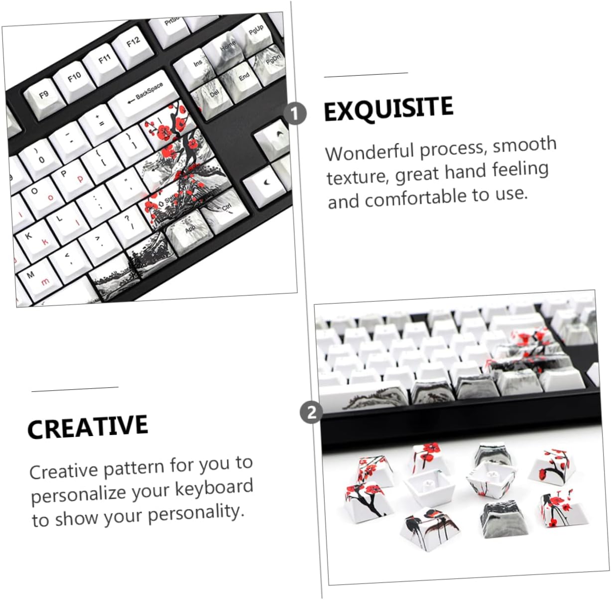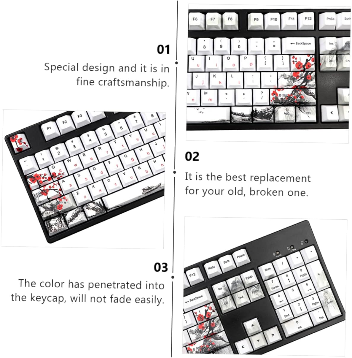 Package Include 1 x Set of 128Pcs Keycaps Characteristics - Material: PBT Design Keycap. - Size: 30.00X15.00X3.00 cm/11.79X5.89X1.18 inch Keyboard Keycaps. - It is manufactured with technology to ensure the high performance of the product and can work for a long time Beautiful Keycap for Keyboard. - Compatible with most mechanical keyboard, more in use, not easy to come off Mechanical Keyboard Keycap. - Lightweight and comfortable to touch, let you enjoy work or gaming time Computer Keyboard Keycaps. - ColorAssorted Color Colorful Keycap - Made with PBT material, and wear resistance, to use Keyboard Accessory. - It is in stable characteristics, high performance and it is in great reliability, simple, easy to install Chic Replacement Keycap.Goods DescriptionMechanical Keyboard Keycap Fine workmanship, ensures practicality. Keycap This chic design mechanical keyboard keycap is made of , which can withstand long-lasting use.Colorful Keycap Features the PBT material, which has high durability, not easy to deform
