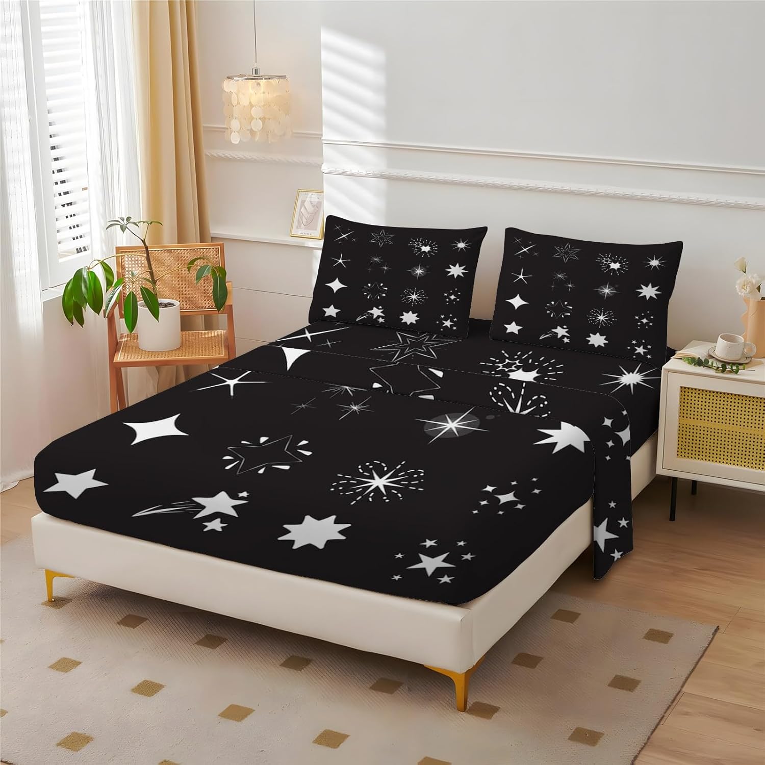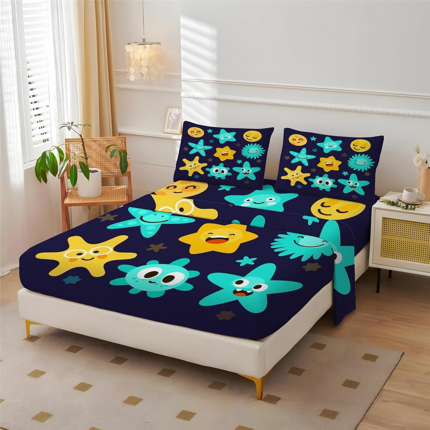 Dreams Begin Here: Comfortable, Stylish, and Practical Fitted Bed Sheets High-Quality Material Our bed sheet sets are made of double premium microfiber fabric, extra soft, comfortable, breathable, anti-shrink, durable, and no odor. Suitable for all seasons, the smooth feel of the sheet is very cozy which keeps you cool during summer and warm during winter ( Hot sleepers can also use it with confidence ) Perfect Fit, Strong Elastic Design These fitted sheets are meticulously designed to fit every inch of your mattress snugly, providing exceptional elasticity and a close fit. Enjoy a comfortable sleep experience without the worry of sheets slipping off Decorative Bed Sheet Set Chic and colorful patterns can perfectly decorate your room, and bedroom and make it look vibrant. Clear pattern, no fading, and high color fastness. Perfect gift for kids, boys, girls, teenagers Delicate Prints, Elevated Taste The delicate prints on these fitted sheets enhance the overall aesthetic, infusing your bedroom with the charm of nature. Ideal for those seeking a high-quality and distinctive style Pet Hair Resistant Don't worry about pet hair anymore, this sheet set won't attract cat and dog hair Customer Service If you have any questions about our products, please feel free to contact us, we are happy to serve you