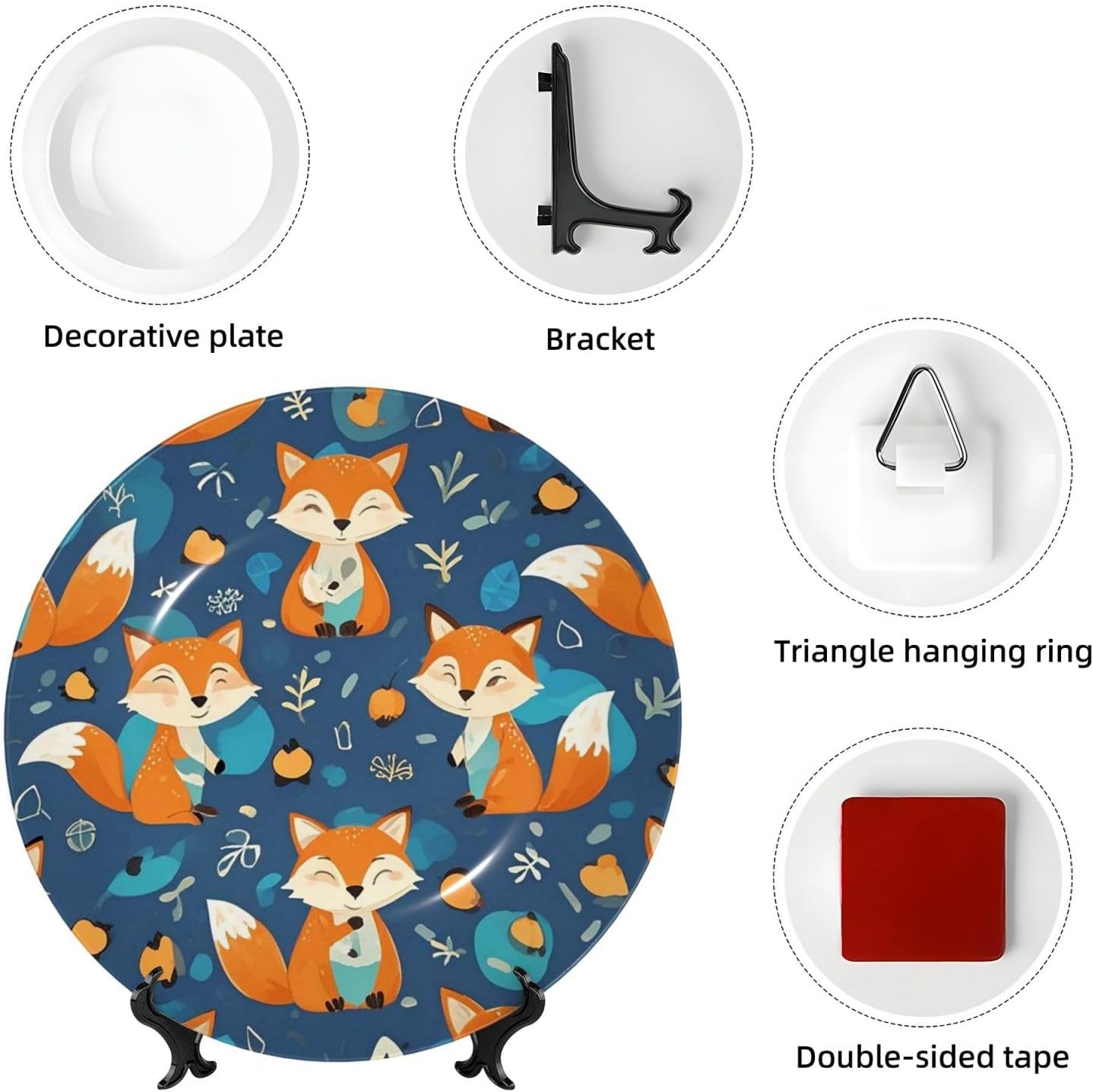 gokays decorative platedo you feel that your table is monotonous? Then use our decorative plate to add a little fun to the monotony of life.featuressize - 6 inch diameter;7 inch diameter;8 inch diameter;10 inch diametermaterial - ceramic design - Cartoon Fox Pattern package - 1 x ceramic decorative plate, 1 x stand, 1 x pothookwhy choose gokays decorative plates?advantageas manufacturers we follow current trends and bring you the latest home fashion. Salad plates ideal for placement at home or in the office. Traditional porcelain making technology, fine workmanship. Ceramic dinner plates is a good gift for family and friends.convenient to useour dinner plates rack for display has 2 ways to use, you can just place the bracket base on a flat surface first, and then put the plate on it, also you can stick the provided pothook at the back of the plate, and then stick the plate on the wall, you can choose the suitable installation method according to the actual situation.occasionour ceramic ornaments salad plates is a perfect decorative and collection for any niche, table, or mantle at your home. Perfect for your office, home, living room, dining room, playroom, kitchen, cafe, study, studio, club, bar, and others.in a surprise for your family and friends!porcelain dessert plates is a perfect gift for any person in your life. You can give it directly to your lover as mother's day gift/father's day gift/birthday gift/christmas gift/valentines day gift/anniversary gift/wedding gift/housewarming gift/new home gift.start with our funny decorative plate, refresh your rooms!