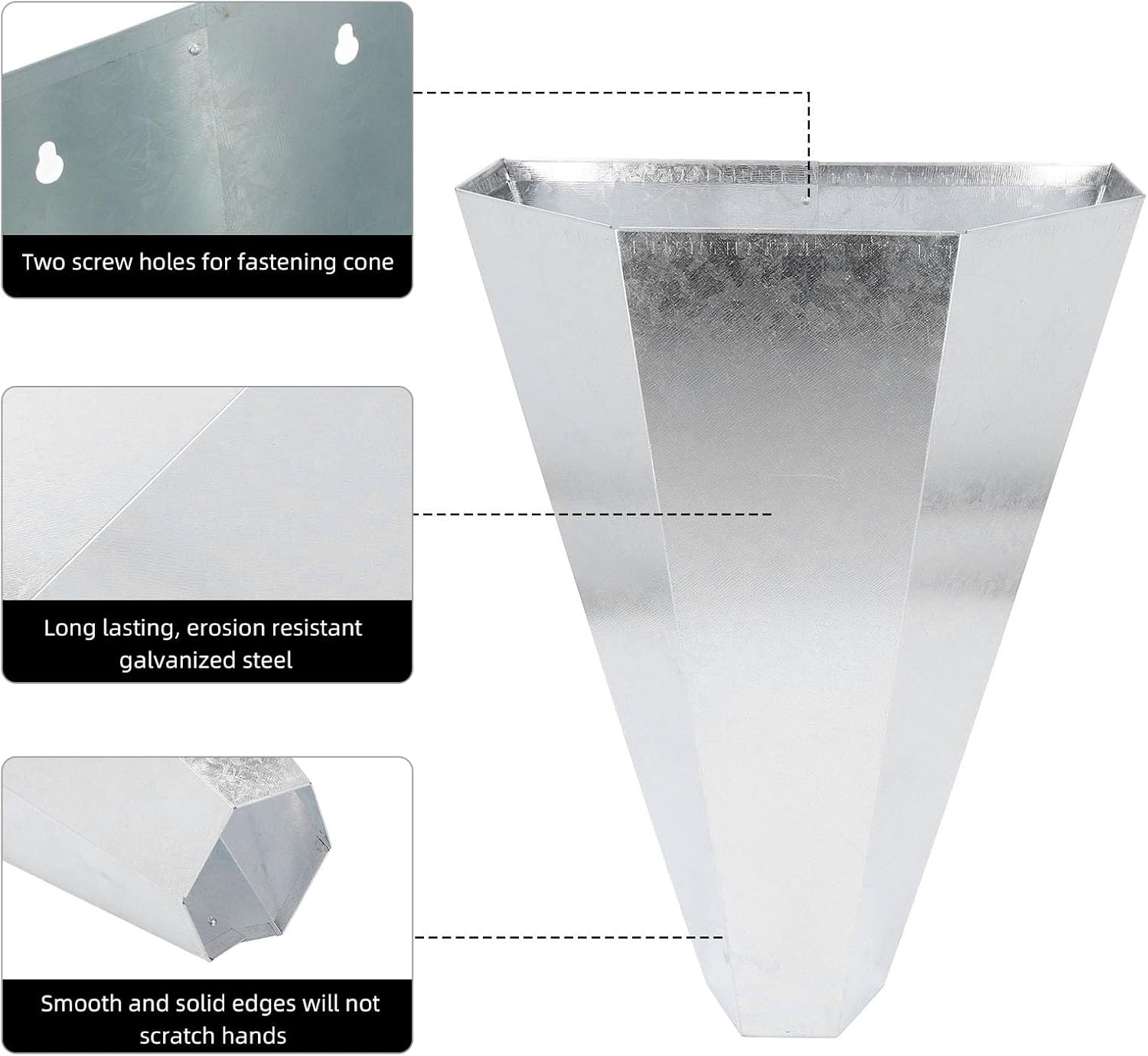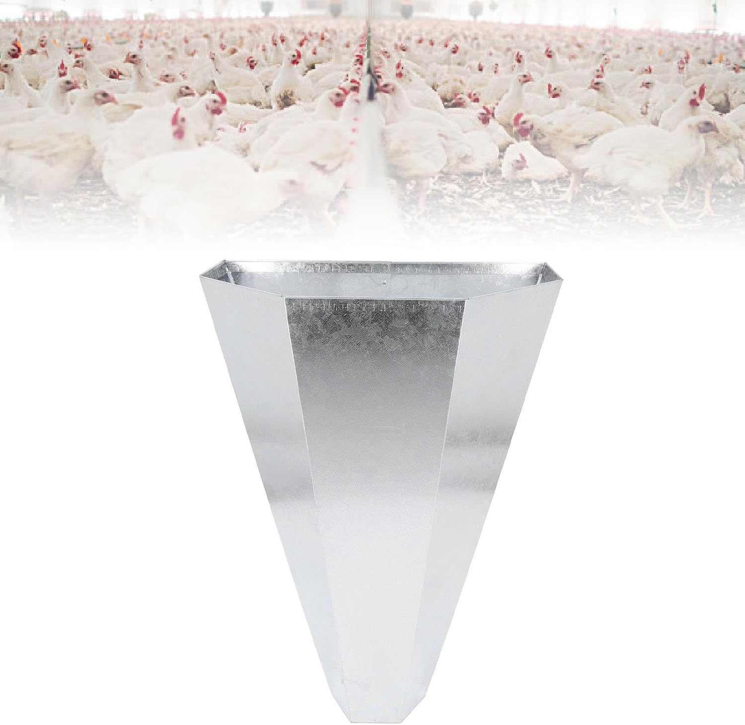 [VERSATILE]: Tailored for medium sized poultry, accommodating chickens, large laying hens, broilers, capons, and turkeys up to 8 pounds for diverse processing needs.[DURABLE GALVANIZED STEEL]: Highly long lasting and erosion , for wet environments like poultry processing facilities or farms.[SECURE DESIGN]: Flat back attachment for stability during processing, ensuring correct positioning and enhancing safety and efficiency.[EFFICIENT FUNNEL SHAPE]: Allows for easy insertion of poultry, ensuring a humane and effective process for enhanced safety and effectiveness.[EASY TO CLEAN]: Supports high cleaning standards, simply rinse or wipe for quick and thorough cleaning maintenance.Spec:Item Type: Chicken ConeMaterial: Galvanized SteelWeight: Approx. 620.00g/21.87ozProduct Size: Approx. 355x265x180mm/14.0x10.4x7.1inPackage List:1 x Chicken ConeNote: