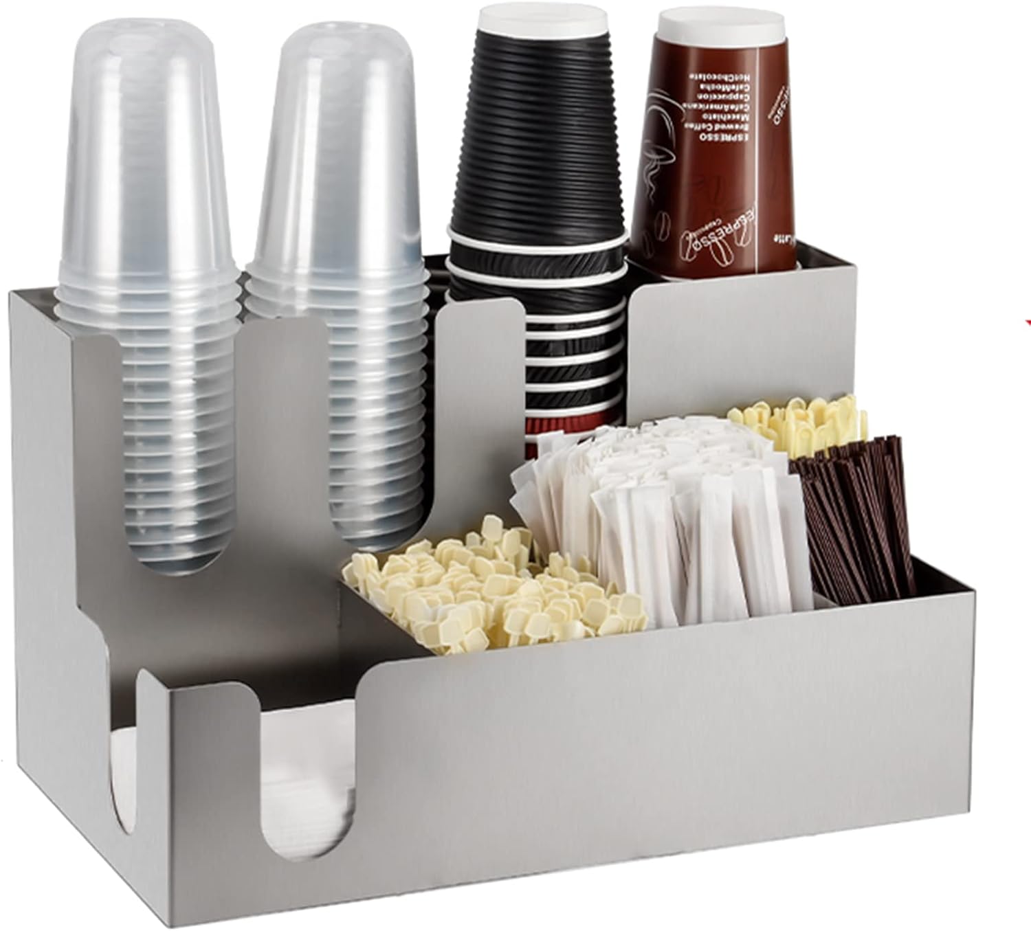 ZMQJEQANBGTh Clean and modern design is perfec For your lounge, kitchen, cafe counter, lobby, hotelCoffee shop or even your own home.Welcome to my store and enjoy your If you have any questions, please email us We Will provide you wit The best solution within 6 hours.The paper cup dispenser is suitable for paper cups and lids with a caliber less than 10CM. Product Name: Coffee Condiment Organizer.Product Material: Stainless Steel.Installation method: desktopWhether to assemble: no need to assembleProduc Weight: 3 kg.Suitabl for The scene: lounge, restaurant, home, kitchen, etc.Suitabl for storing items: coffee capsules, sugar packets.Easy to Clean: This coffee condiment organizer is easy to clean. Stains on organizer surface can be cleaned effortlessly by wiping with cloth and cleanser.