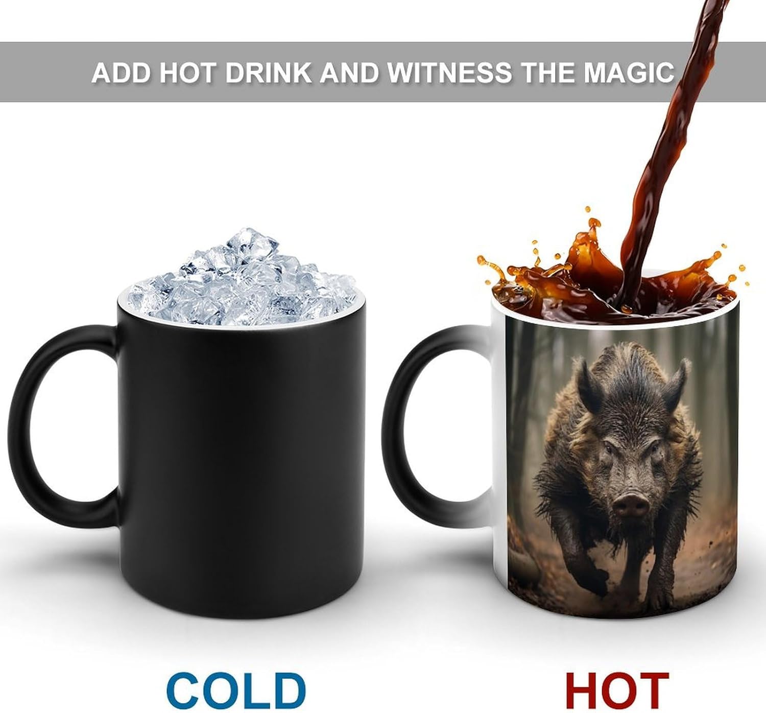 Color Changing Cups,Wild Boar Photos Printed 11 Oz Ceramic Cups for Birthday Men Women