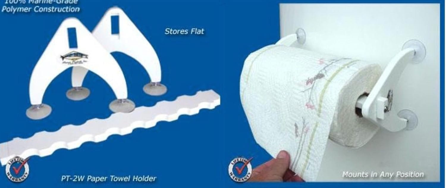 The Deep Blue Marine PT-1 Universal Paper Towel Dispenser easily mounts in any position by use of suction cups. Simply turn the handle on one end of the holder and slide a roll of paper towels on... It's that easy!