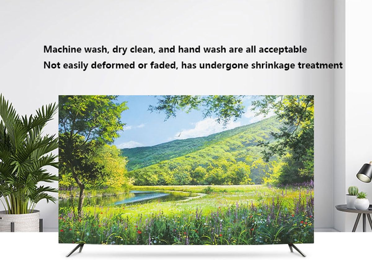 The lid is beautifully decorated, covering the TV like a beautiful painting. The TV cover can protect the TV from daily wear and tear, such as dust, fingerprints, oil stains, scratches, etc. Product information:Product name:TV Dust CoverFabric: Linen/Can be shadingFunction: Decoration, Provides year round protection for your TV and computer monitorsApplication: Living Room, Balcony, StudyWashing: support hand wash, machine washPackage Included: 1 x TV CoverAttention: Monitor size means the display's diagonal distance. Customer should check and compare it with his monitor's before purchase.Note: Due to different monitors, different shooting angles and lighting effects, there may be some chromatic aberrations on tv cover. Due to different shooting light and monitor, the product may have slight color difference, thank you for your understanding.Best service for you. Any questions or problems, please feel free to contact us, we will be at your service within 24 hours to give you a satisfactory solution(Return/Replacement/Compensation).