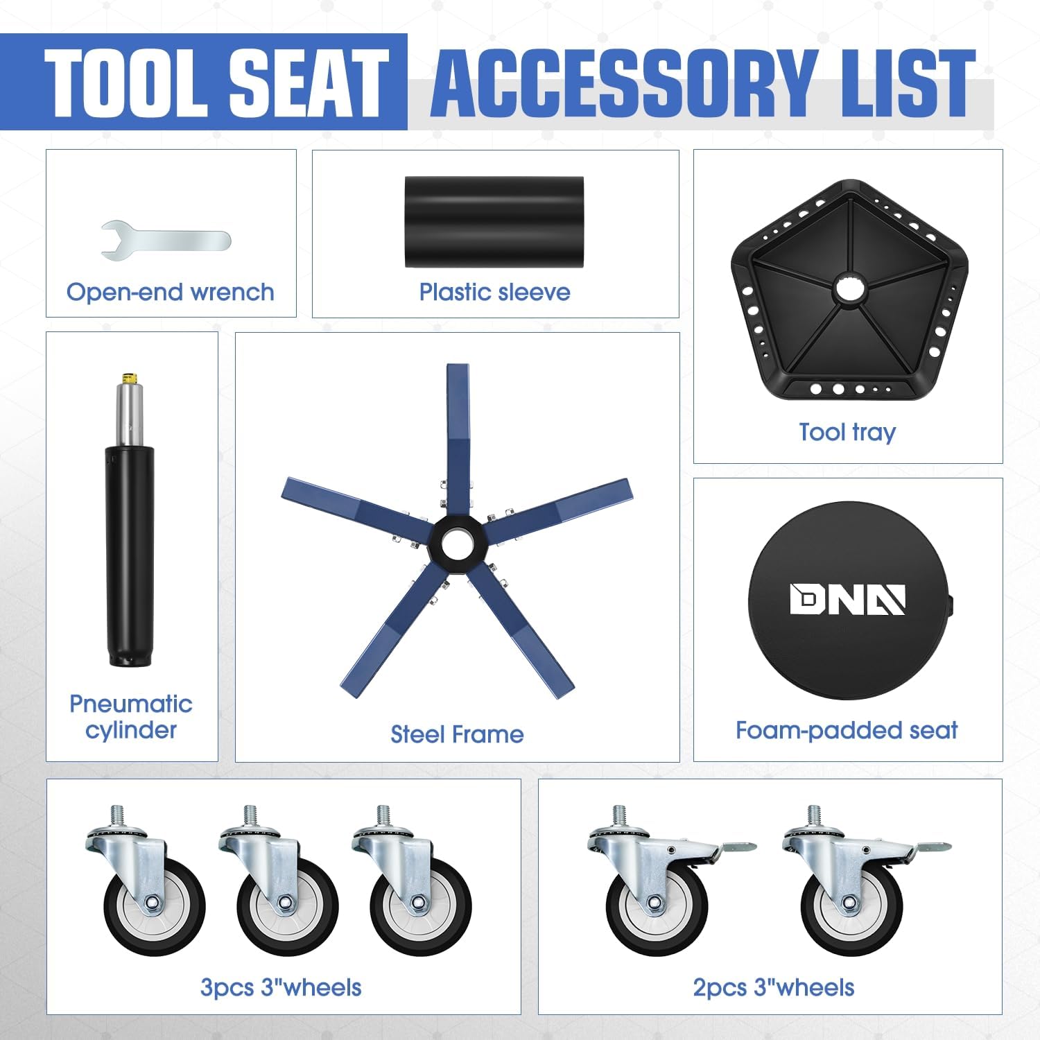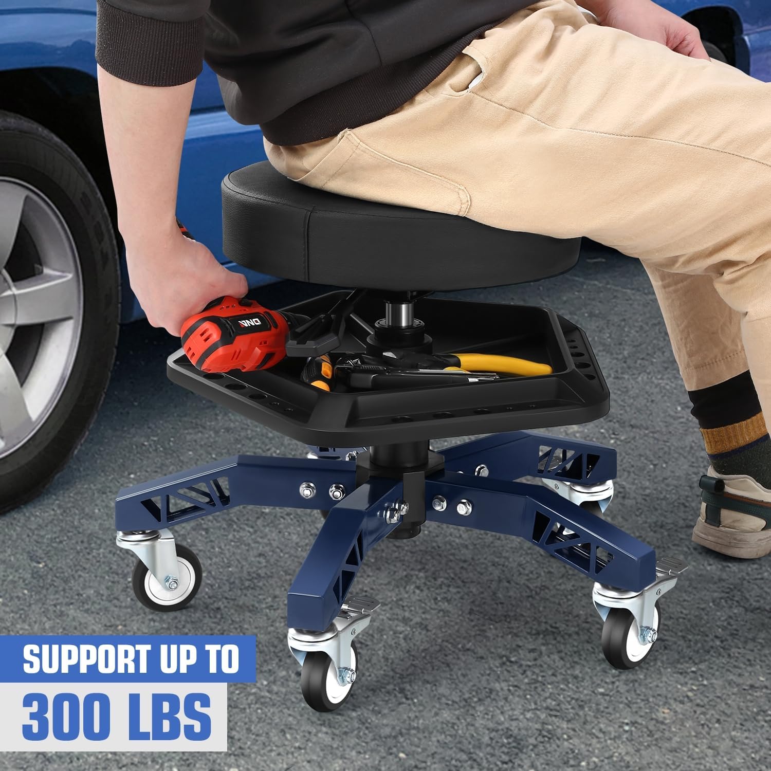 | Item Type Name | DNA MOTORING Rolling Shop Stool, Adjustable Height Padded Rolling Seat, Pneumatic Roller Mechanic Stool for Garages, w/ Tool Storage Tray, 300lbs Capacity, TOOLS-00636-BK-BL |