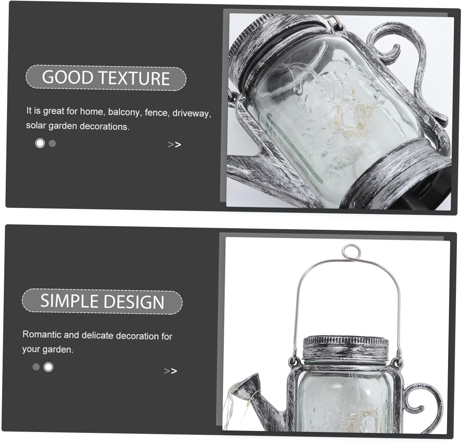 Package List 2 x jar lights Features - Voltage: 1.2V Glass Jar Light. - Size: 15.50X9.75X9.75cm/ 6.09X3.83X3.83inch Hanging Jar Light. - Rated Power: 0.06W Garden Jar Light. - Working Time: 6-12h Jar Hanging Light. - Life Span: 60000H Yard Solar Jar Light. - Color: Silver Jar Light. - Waterproof Grade: IP65. - Material: Glass + Iron. - It is great for home, balcony, fence, driveway, solar garden decorations Solar Hanging Jar Lights. - Creative kettle shaped design, romantic and delicate decoration for your garden Jar Solar Lights. - Manufactured with glass and iron material with smooth surface and high hardness Solar Jar Light. - The waterproof design can withstand rainy days or small snowy days Garden Glass Jar Light. - At night, jar lights like the lanterns filled with used by elves.Goods InformationSolar Hanging Jar Lights Great for any occasion, make warm and charming atmosphere mode for tree, patio, lawn, garden, party, wedding, Christmas, home decoration lights.Solar Jar Light Creative jar firefly lights can be used indoor and outdoor for DIY decor