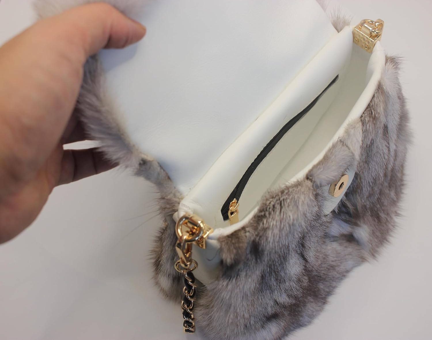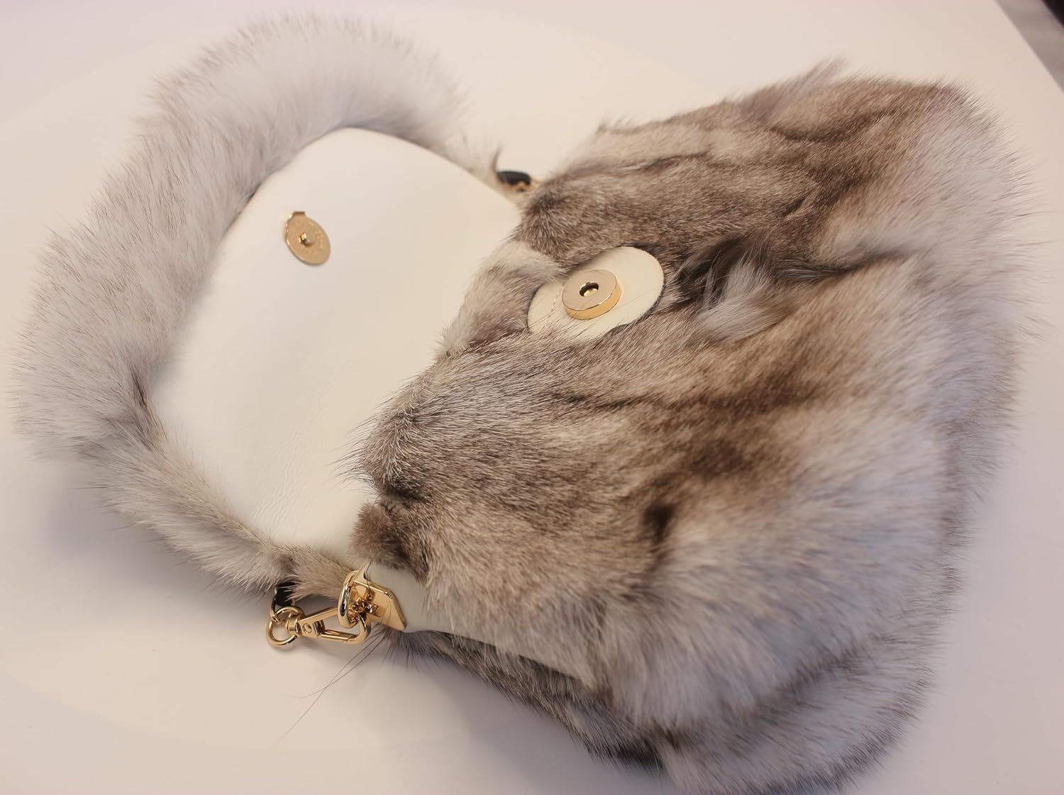 ndulge in the elegance of luxury with our Blue Arctic Fox Fur Shoulder Bag—a timeless accessory designed to elevate your style. Crafted from premium, natural blue fox fur, this exquisite shoulder bag combines unparalleled softness and a sleek, contemporary design, making it a statement piece for any occasion. Key Features: 1) Genuine Arctic Fox Fur: Made from ethically sourced blue fox fur, this bag offers a plush, velvety texture and a naturally stunning luster. Each strand of fur reflects sophistication and quality. Luxurious and Durable Design: The bag features a classic flap design with dimensions of 21cm (L) x 15cm (H) x 9cm (W), perfect for carrying your essentials like a smartphone, cosmetics, or a compact mirror. Stylish Shoulder Strap: A chic metal-and-leather woven strap adds a modern touch, ensuring comfort and style while wearing. Ethical Sourcing: The fox fur is carefully obtained from farm-raised foxes under ethical practices that prioritize animal welfare throughout their care and harvesting process. This stunning accessory seamlessly blends fashion and functionality, offering a practical yet opulent solution for your everyday needs. Ideal for winter outings, dinner parties, or as a thoughtful gift for someone special.