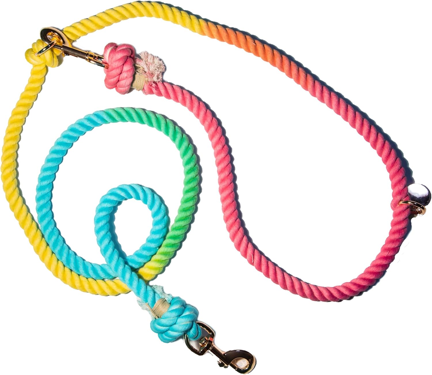 Experience stylish walks with our light pink dog leash featuring elegant rose gold hardware. This fashionable accessory combines aesthetics with functionality, ensuring you and your pet look great. Say goodbye to ordinary leashes and hello to a blend of style and durability. Discover the features that make this more than just a leash. . Crafted from thick, twisted cotton rope, this durable dog leash is gentle on your hands yet strong enough to handle even the most enthusiastic pups. The comfortable knotted handle ensures a secure grip, giving you peace of mind during walks and training sessions. Multiple attachment points provide hands-free versatility, allowing you to wear it cross-body or around your waist. Enjoy the freedom and control with these hands free leash options, designed for busy pet parents. . This versatile lead is ideal for a variety of activities, from casual strolls to intensive training. Use it as a training dog leash to teach your dog new commands and reinforce good behavior. The robust rope design and sturdy metal clips provide added security, preventing accidental escapes. Enjoy the freedom of hands-free walking, allowing you to stay connected and engaged with your surroundings. . Experience the perfect blend of style, durability, and functionality with our hands-free cotton rope dog leash. Enjoy comfortable and secure walks with your beloved companion, knowing you have a reliable and fashionable accessory by your side. Makes for a great dog lover gift, too.