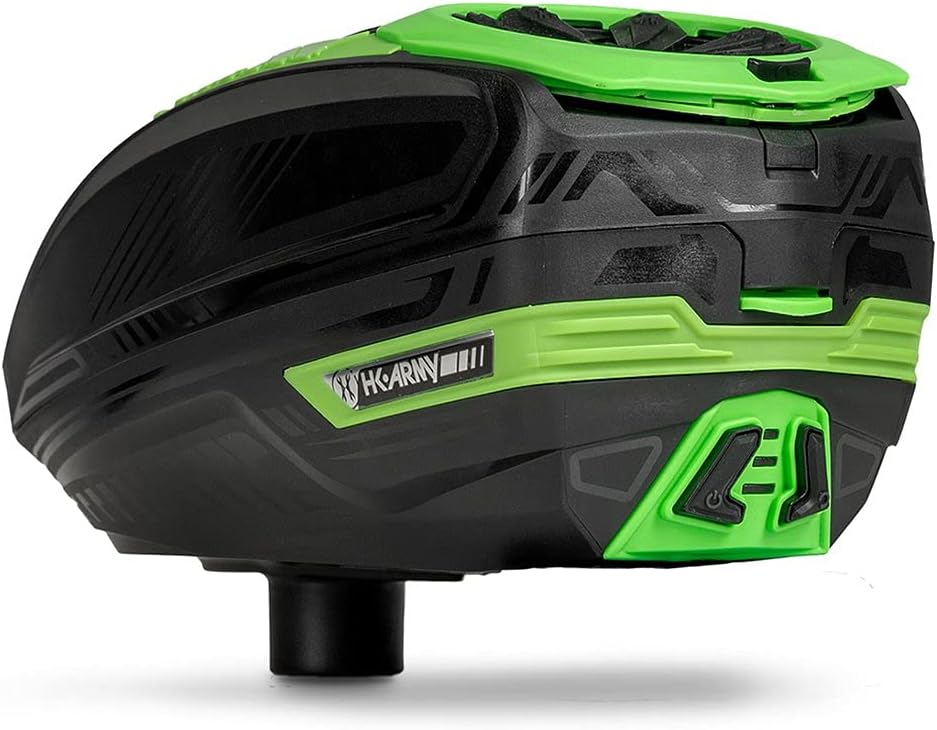 With the perfect synergy of function and style, the TFX 3 can accommodate 230+ paintballs with the expansion shell. The Zero Gravity Lift Tray is an industry first; the integrated tray increases the volume capacity without compromising the size of the loader shell. The spring activated lift is designed to elevate and guide paintballs toward the feed system, never leaving a ball behind. Encased in the lift tray is a rechargeable Li-Ion battery, a LED battery meter and USB-C charging port. As each paintball is shot, the Break Beam Laser Eye System activates the patented Swoop Stack assembly to continuously drive paintballs forward into the marker. The 3-layer slip system enables the "Soft Touch Paddles" to effectively agitate and loosen any possible jam to continue feeding. The Laser Eye System will recognize when the loader is low on paint and signal the assembly to rotate in intervals; allowing paintballs to feed with less interruption. The Swoop Stack operates flawlessly with all types of paint; oily, dimpled, brittle, and even works perfect with Reball and other reusable paintballs. Completing the package is the extremely sleek and low-profile Combat Contour shell that is constructed of high grade impact resistant material, which will withstand any abuse during play. The shell incorporates a push button QuickLid feature which makes changing from the included HK Army Speed Feed to full coverage lid effortlessly. The electronics are protected with a water-resistant coating to keep you active in snow, rain or shine.