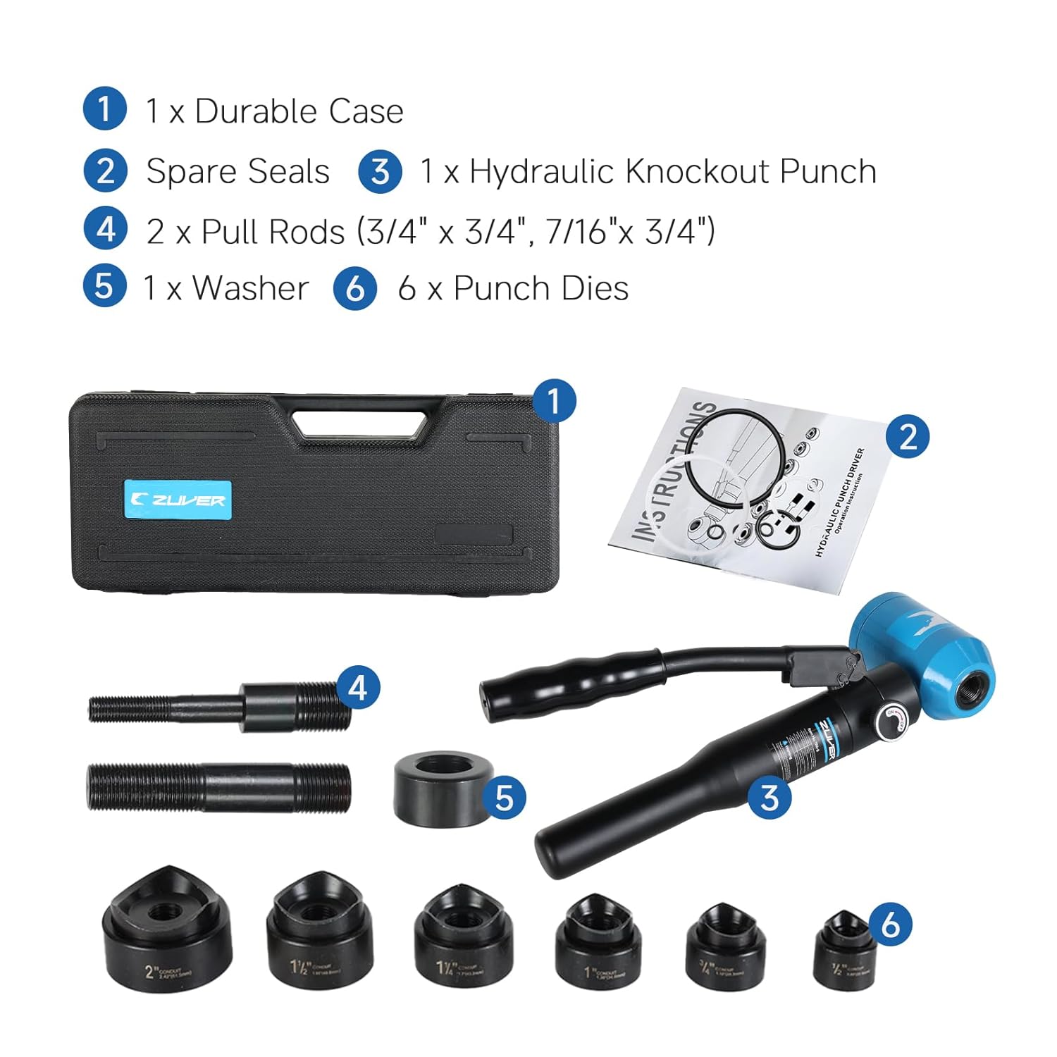 | Included Components | 6 x Dies, 2 x Draw Studs, 1 x Hydraulic Pump Driver, 1 x Plastic Case |