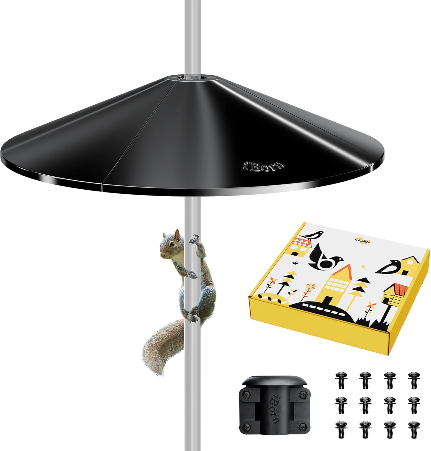 iBorn Squirrel Baffle for Bird Feeder Pole, 19.5” Oversized Squirrel Guard Baffle, Squirrel Defender, Bird Feeder for Outdoors Protector, Thickness PC Plastic, Pack of 1, Black+Metal Bird Feeders for Outdoors Hanging,Wild Bird Feeders for Cardinal,18cm Large Roof&Tray Brushed Copper 6 Port (Seed is not Included)