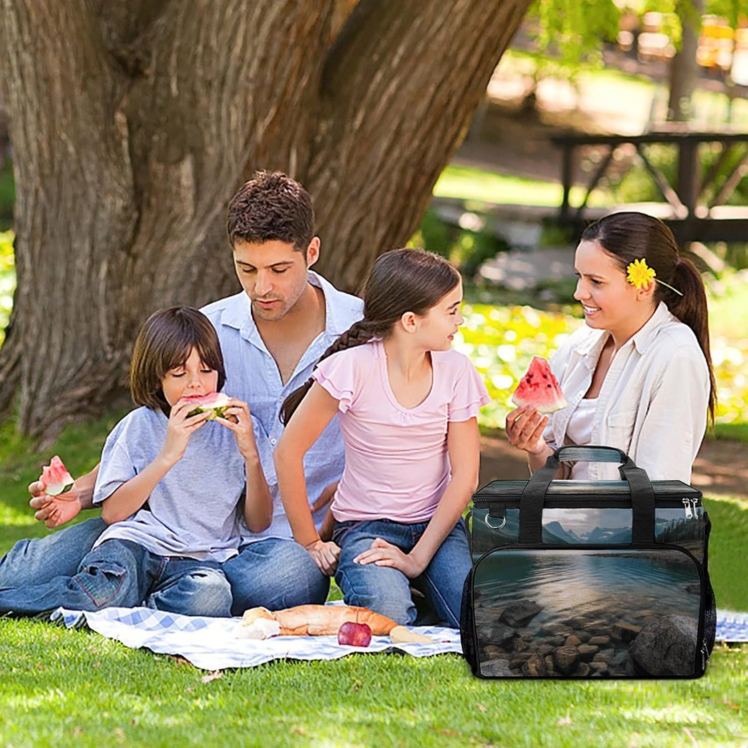 Take Your Meals Anywhere with Glacier National Park Grocery BagsFood Container Carrier Oxford Fabric Picnic Bag Heat Retaining Food Bag Camping Cooler BBQ Accessories Cute Picnic Bag with Pockets Insulated Food Bag for Work Insulated Lunch Tote Bag Camping BagTemperature Control That WorksThe upgraded aluminum foil lining creates an effective thermal barrier. Your drinks stay refreshingly cold, and your hot dishes maintain their warmth for hours. No more lukewarm meals during outdoor outings.Thoughtful Storage DesignTwo side mesh pockets - Perfect for water bottles or umbrellasFront zippered pocket - Keeps keys, phone, or condiments organizedInternal mesh pocket - Stores utensils, napkins, and small essentialsMain compartment - Spacious enough for food containers and snacksBuilt for Daily AdventuresConstructed from high-density oxford fabric with reinforced stitching at stress points. The double zippers are sturdy and smooth-operating. Reinforced handles let you carry heavy loads with confidence.Carry Your WayHandles for quick grabbingStands upright for easy packing and accessPerfect For:Picnics in the parkBeach days and pool partiesCamping and hiking tripsOutdoor concerts and festivalsDaily work lunchesGym and fitness classesRoad trips and travelGrocery shoppingSpecifications:Dimensions: 15.4 x 11.8 x 11.8 inchesMaterial: High-density Oxford fabricLining: Aluminum foil (insulated)Closure: Sturdy double zippersPockets: 2 side mesh, 1 front zipper, 1 internal meshCare: Hand wash or machine wash, do not bleachNote: Food containers and utensils shown in images are not included.