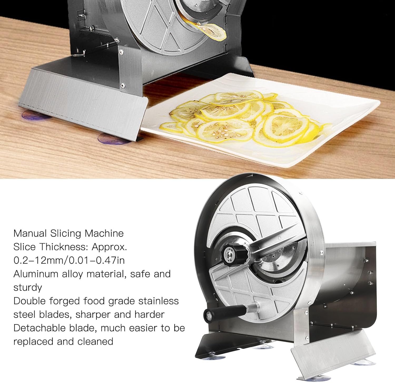 • MATERIALS]: Meat Slicer is Made of and sturdy aluminum alloy, this slicing machine is built to last. It features forged food-grade stainless steel blades that are incrediblyand .