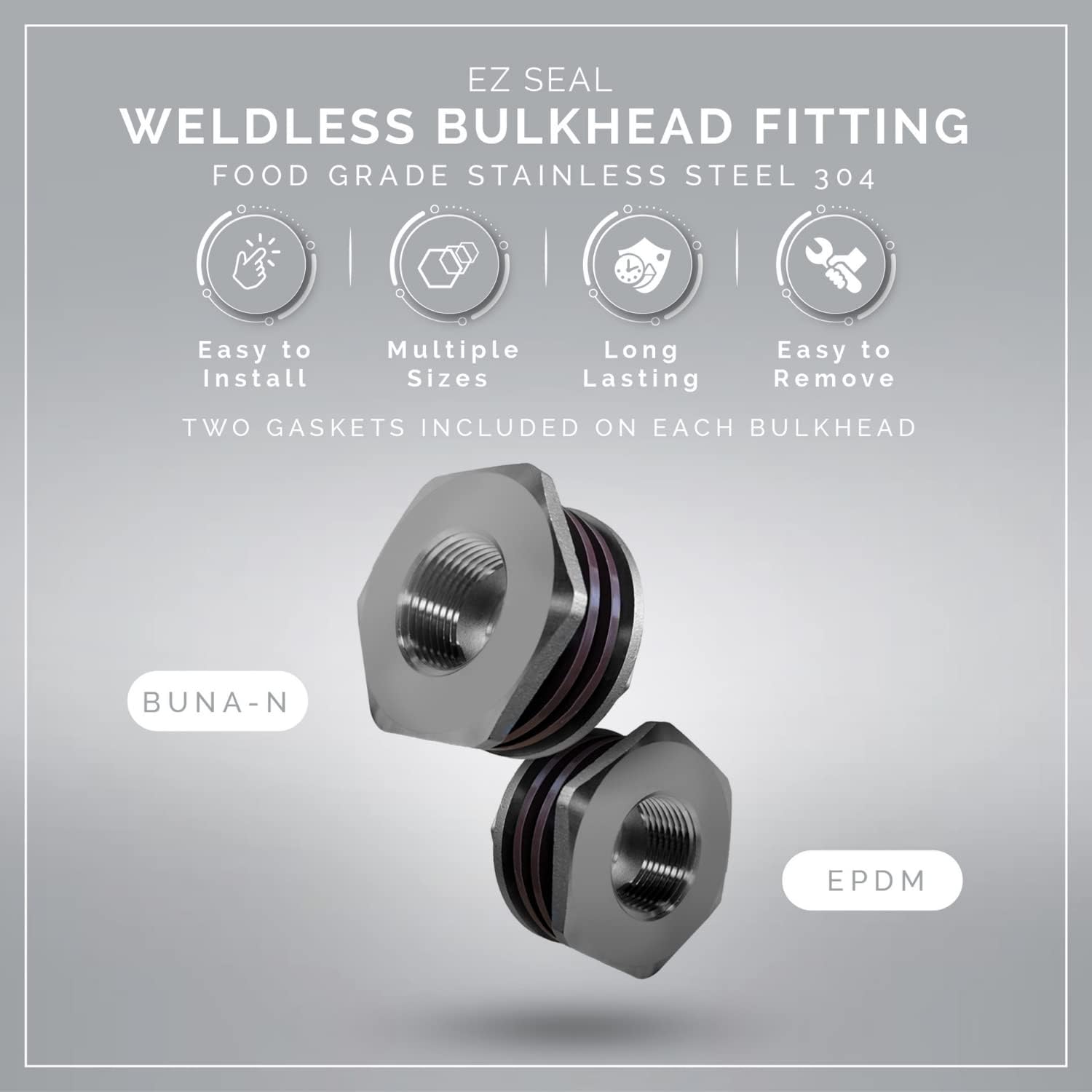 | Material Type | 3/4” NPT EZ Seal Weldless Bulkhead, EPDM Gaskets |