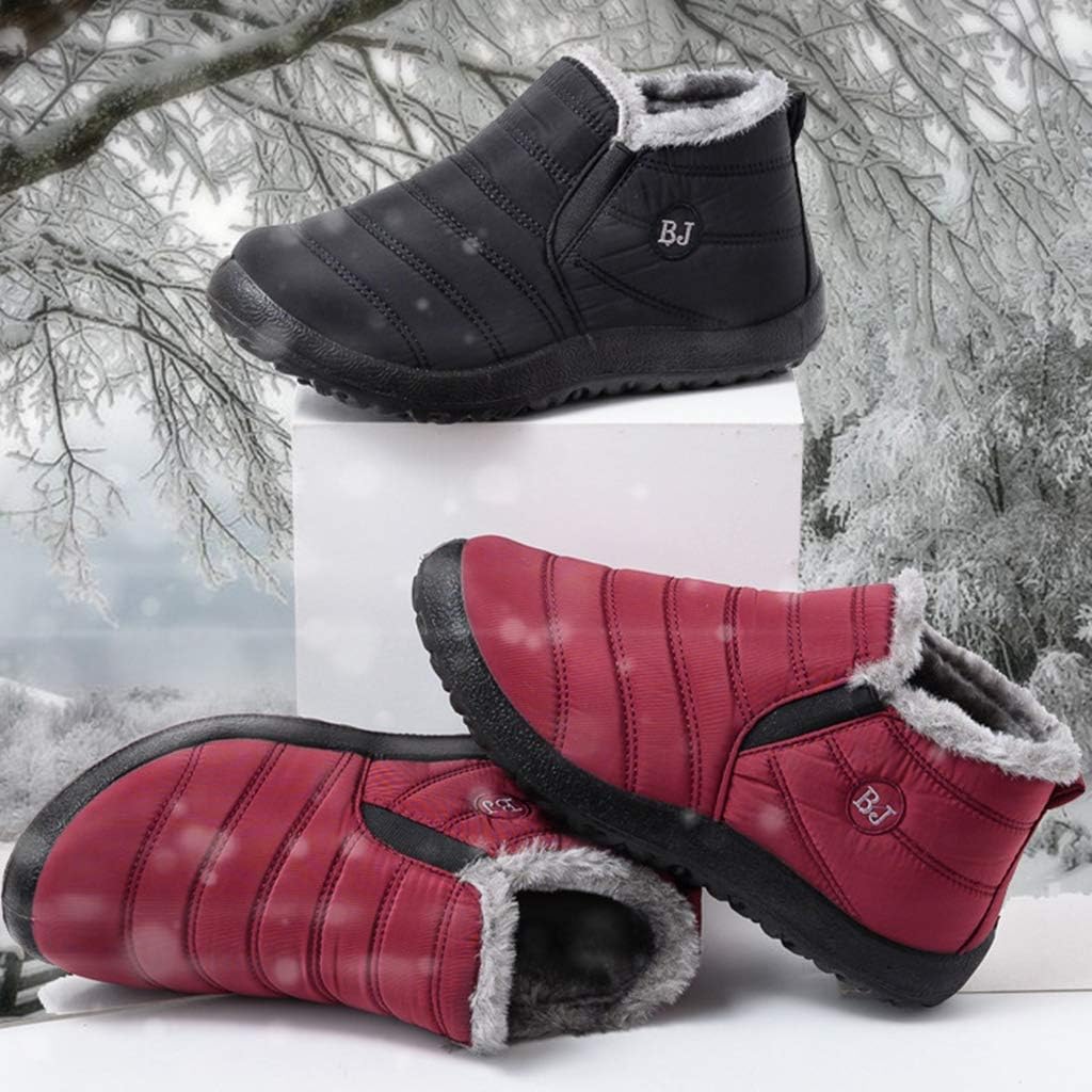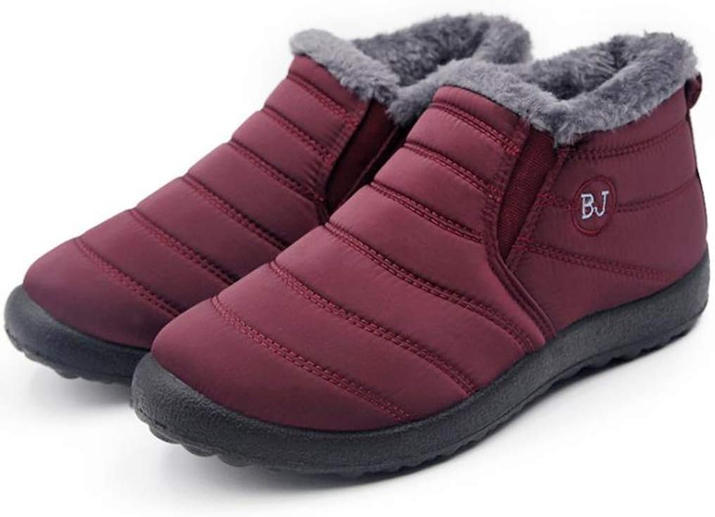 Women's Waterproof Snow Ankle Booties Lightweight Slip On Winter Fur Outdoor Rain Snow Short Boots Size Chart:Size 4 US = EU34 = Heel to Toe 22.0cm/8.66"Size 4.5 US = EU35 =Heel to Toe 22.5cm/8.86"Size 5 US = EU36 = Heel to Toe 23cm/9.06"Size 6 US = EU37 = Heel to Toe 23.5cm/9.25"Size 7 US = EU38 = Heel to Toe 24cm/9.45"Size 8 US = EU39 = Heel to Toe 24.5cm/9.65"Size 8.5 US = EU40 = Heel to Toe 25cm/9.84"Size 9 US = EU41 = Heel to Toe 25.5cm/10.04"Size 10 US = EU42 = Heel to Toe 26cm/10.24"Size 11 US = EU43 = Heel to Toe 26.5cm/10.43"Use your length and width measurements to find your shoe size on the above size chart. If your foot is fat or wide, please select a bigger size up.PERFECT ITEM FEATURES:☛Item Type: Snow Boots☛Main Material: High Quality Waterproof Umbrella Cloth Upper; Comfort Warm Fur Lining; Non-skid Rubber sole.☛Closure_type: Slip On Closure☛toe_style: Round-toe☛Heel Height: Heel Height 0.98 inch☛Width: Medium (BM)☛Season: Winter/Cold Weather☛Color: Multiple colors optional☛Occasion Lifestyle: Fashion,Classic,Casual.☛ ☛
