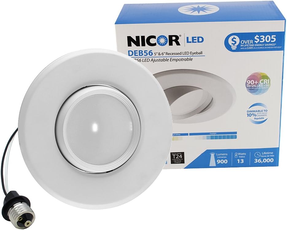 Part of NICOR’s D-Series, the DEB56 is the perfect LED downlight solution for wall lighting and highlighting specific design features in your home. With a 360°/30° range of motion, the DEB56 provides the flexibility for those applications where a standard recessed downlight doesn’t quite fit. The DEB56 gives you the ability to aim light exactly where it’s needed allowing for more accent and display lighting applications. From LED color rendering and trim finishes to fixture performance, the design style is consistent with other luminaires in this design series. At NICOR, we’re always looking for ways to make your light better. We continue to innovate, challenge our thinking and improve our processes. We look to earn your business by delivering progressive lighting solutions designed to balance value with the highest design performance possible. We’re determined to bring you reliable products that provide real solutions. When you choose a NICOR product, you can rest assured you’re getting a product that has been tested to the highest standards available. Our commitment is to be a leader of reliability, innovation, and excellence because we understand just how important you are.