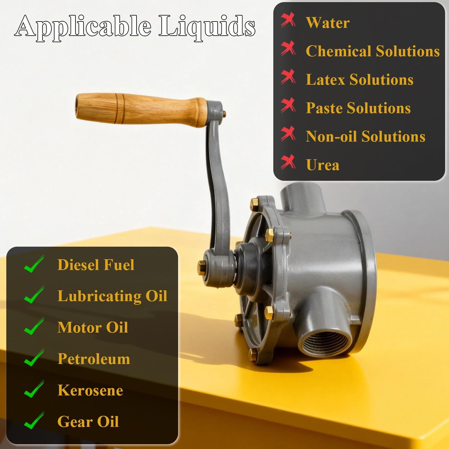 | Included Components | 1 * NPT Thread Hand Fuel Pump Body, 1 * Hand Crank, 1 * NPT Thread 1-1/4" Adapter |