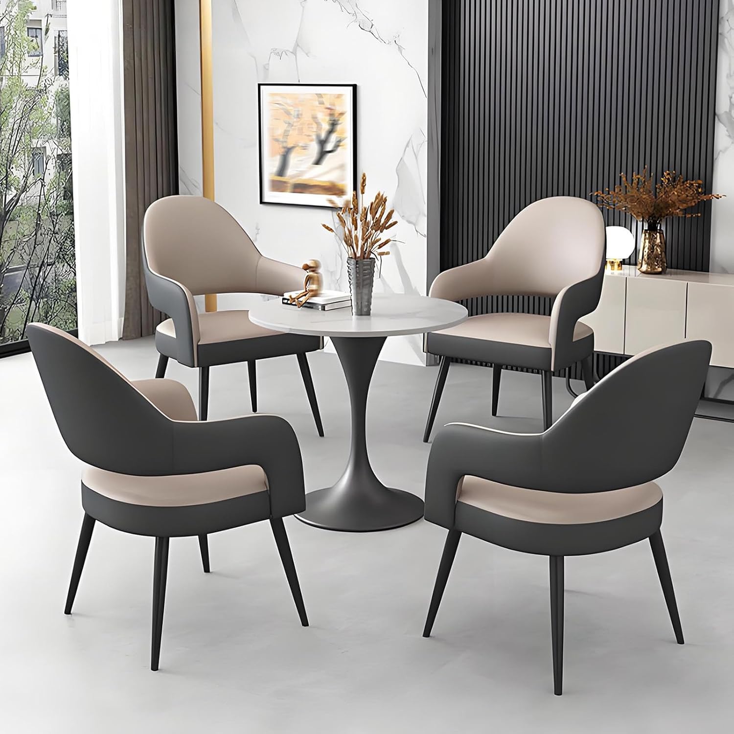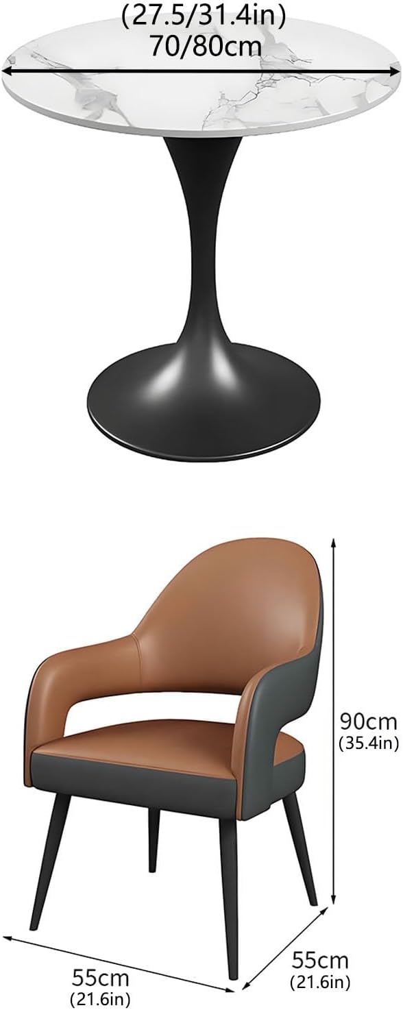 Product features:Business Dining Table Set has a dignified and elegant overall shape, exquisite craftsmanship, and a fusion of luxurious temperament and high-end leather to create extraordinary charm.Clean and neat lines outline a round and full outline, and mature and stable color matching makes the space exude a comfortable atmosphere and enjoy the negotiation atmosphere.Product parameters:Product name: office reception room club tableColor: Gray, orangeFeatures: simple, generous, space-savingStyle: simple and modernStandard structure material: metalTable shape: roundTable material: rock boardTable diameter: 70cm/27.5in, 80cm/31.4inChair material: leatherApplicable scenarios: office, cafe, milk tea shop, front desk, restaurant, library, cinema, clothing store, living room, etc.Applicable number of people: 4 peopleInstallation method: simple assemblyPacking list: 1*table, 4*chairsPurchase instructions:1. Size description: The product is completely measured by hand, and there may be an error of 1-3 cm, please understand.2. Picture description: Due to different lighting, angles, displays, etc., there may be slight color differences, please refer to the actual product