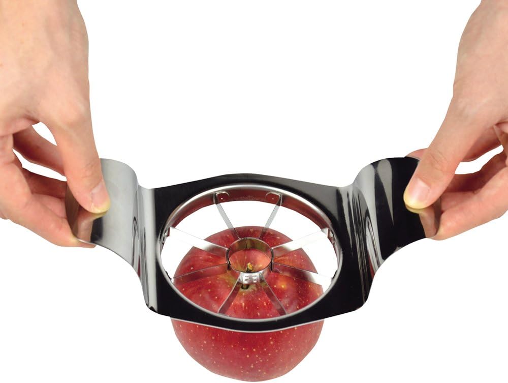 Cut apples into 8 at a time without using a knife Simply push the cutter over the apple. Suitable for apples up to 3.5 inches (9 cm) in diameter. Dishwasher and dryer safe.