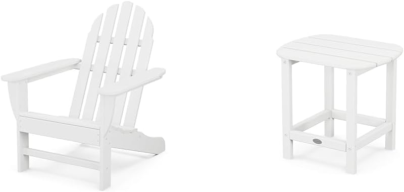 The POLYWOOD Classic Adirondack Chair and South Beach Side Table bundle includes two complementary outdoor furniture pieces made of durable, all-weather POLYWOOD lumber. The Adirondack chair provides a roomy, 30-inch wide seat for comfortable outdoor lounging. Its fade- and weather-resistant material means no painting or staining required. Pair it with the smaller 18-inch side table, an ideal accent piece for holding snacks and drinks. Like the chair, the table is crafted from sturdy, recycled POLYWOOD that withstands weathering and environmental stresses like sun, salt spray and cold winters without splintering or peeling. Both pieces assemble easily with included hardware and require only simple soap and water cleaning periodically. With space for relaxation in the chair and room for accompaniments on the table, this set bundles must-have elements for enhancing outdoor living areas like decks, patios and porches.