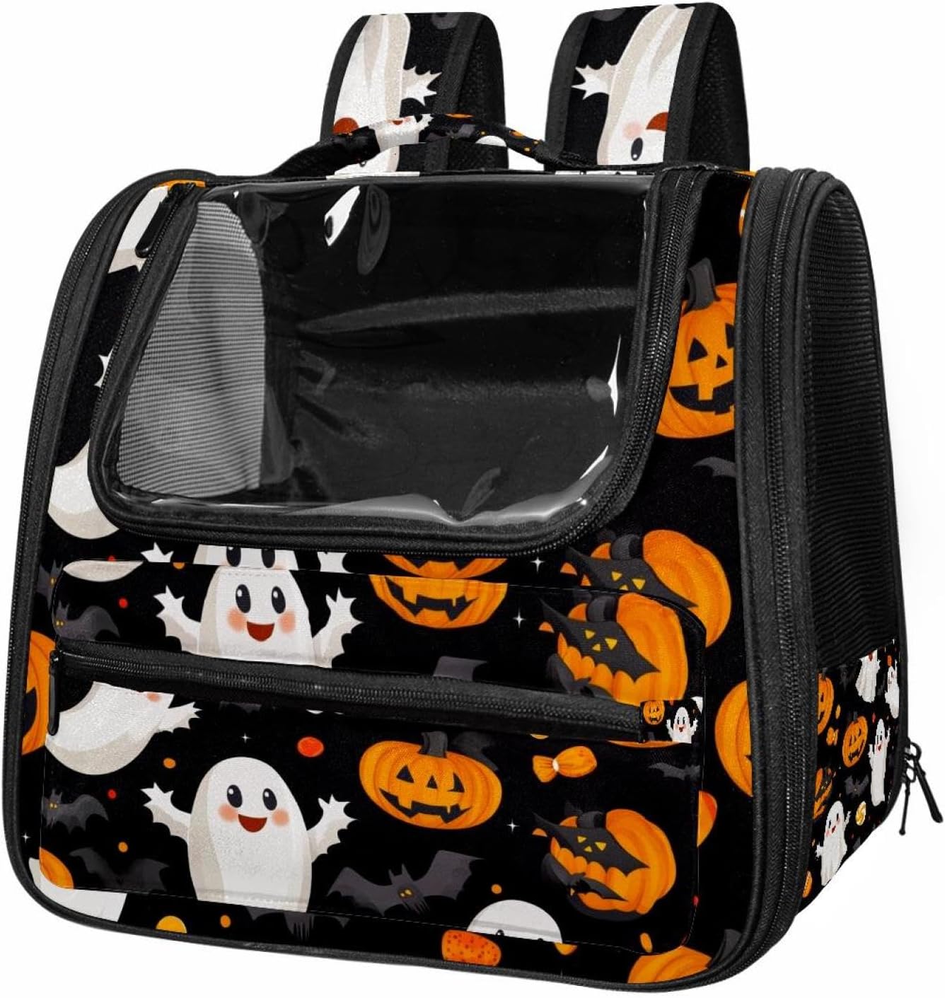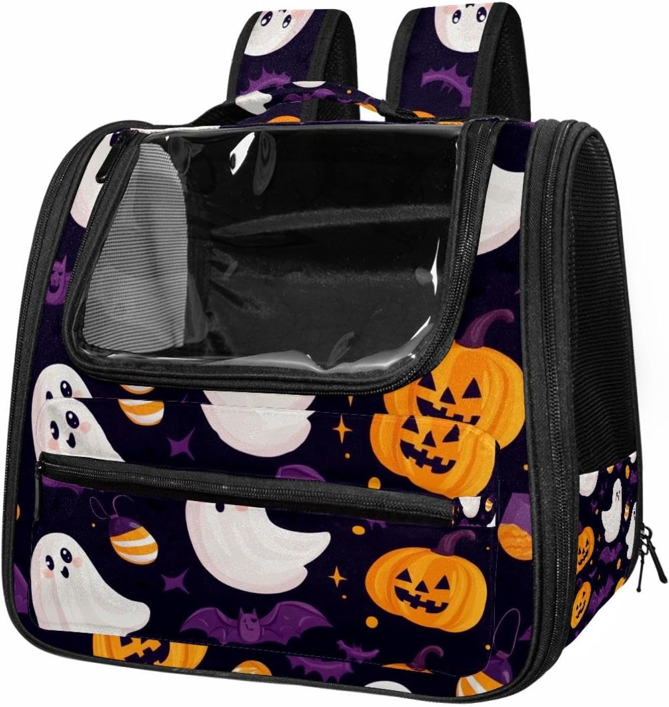 Well made: Cat Backpack Carrier is made from 900D oxford fabric, pp webbing, velvet, nylon, which is very sturdy, environmentally friendly and breathable. Not easily scratched by pet’s claws, pet backpack carrier is SAFETY & ANTI-SCRATCH. The back padding will give you a comfortable and breathable experience. Ventilated Backpack: With a breathable window in the front, this pet backpack allows cats to enjoy the sun without feeling stuffy. There are two side pockets and one big front pocket, and you can take foods or toy for your kitten pet. It is big enough for cat to turn around, and there are side pockets and hook holes, you will enjoy the greatest convenience when taking your cat out. Perfect size: Cat carrier is 15.75x9.84x13.78in/40x25x35cm. Fits most small/medium sized cat, dog, and pet. Quality fleece bed provide a comfortable place for your pet. Lightweight and easy to carry to all places. Built-in harnesses keep your naughty friends from escaping. Removable cosy mat for easier cleaning and let your pet enjoy it inside. Easy to carry: The adjustable shoulder strap of pet carrier bag help you hands-free carrying and makes it the most safe and convenient pet carrier bag for your travel. Seat belt design provide pets with safety protection throughout the trip. Pad protection keep your pets comfortable during travel. Unique Design: Innovative inside graphic design gives you a stereoscopic 3D visual experience. You also send us the photos you interest to make your unique dog or cat carrier. Pet bag is also a amazing gift for pet lover.