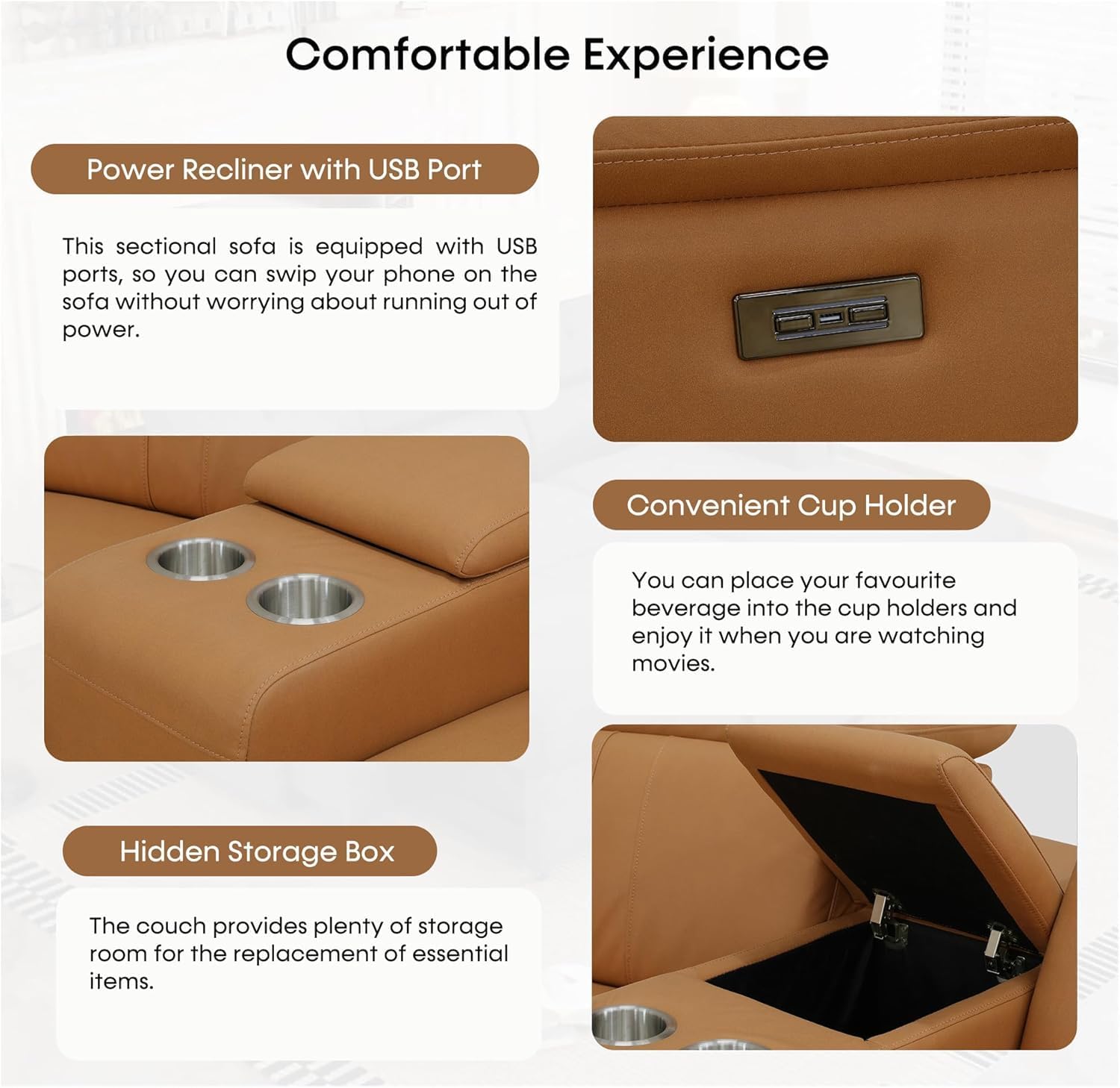 | Additional Features | Adjustable Headrest, Cup Holders and Storage Console, Power Reclining Sectioanl, USB Charging Ports |