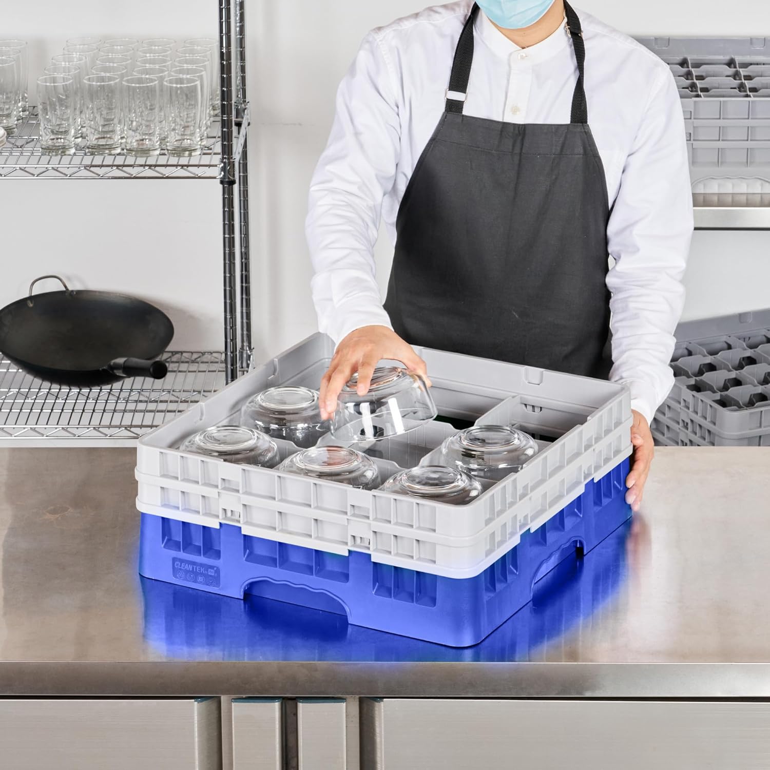 Efficiently organize and protect your barware with our Clean Tek Professional Blue Glass Rack. This commercial glass rack features 9 compartments, making glassware storage a breeze. Designed with a durable PP construction, this dishwasher rack withstands the rigors of daily use in busy commercial kitchens. For added convenience, this compartment rack includes 1 full drop extender and 1 half drop extender, providing flexibility to accommodate various glass sizes. The open interior compartments ensure proper air circulation and effective drying of glassware. With solid external walls, this barware organizer averts breakage and keeps your glassware secure. The easy-to-handle design of this commercial glass rack simplifies transportation and storage. Measuring 19.69 inches in length by 19.69 inches in width by 7.24 inches in height, this dishwasher rack offers ample space for all your glassware needs. Sold in a 1 count box.