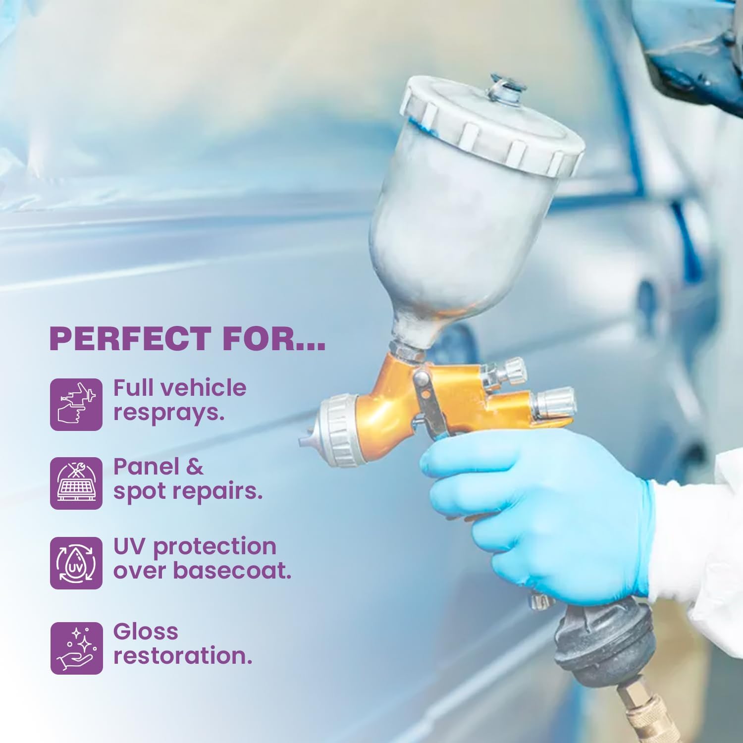 • SUPERIOR MATERIALS AND FEATURES: Our clear coat paint for cars is formulated with high-quality polyurethane and acrylic materials to ensure robust protection and a sleek, high-gloss finish. It provides excellent adhesion to automotive surfaces, ensuring a long-lasting and high-performance finish that stands up to everyday wear and tear.