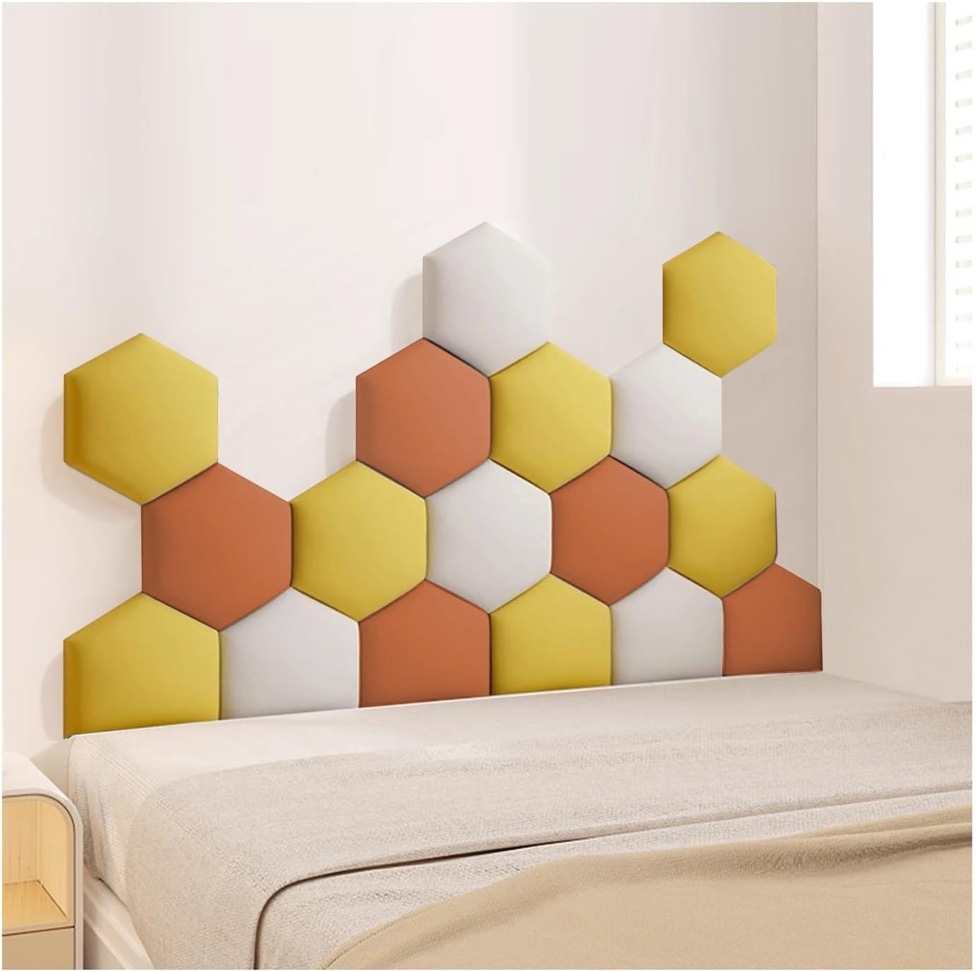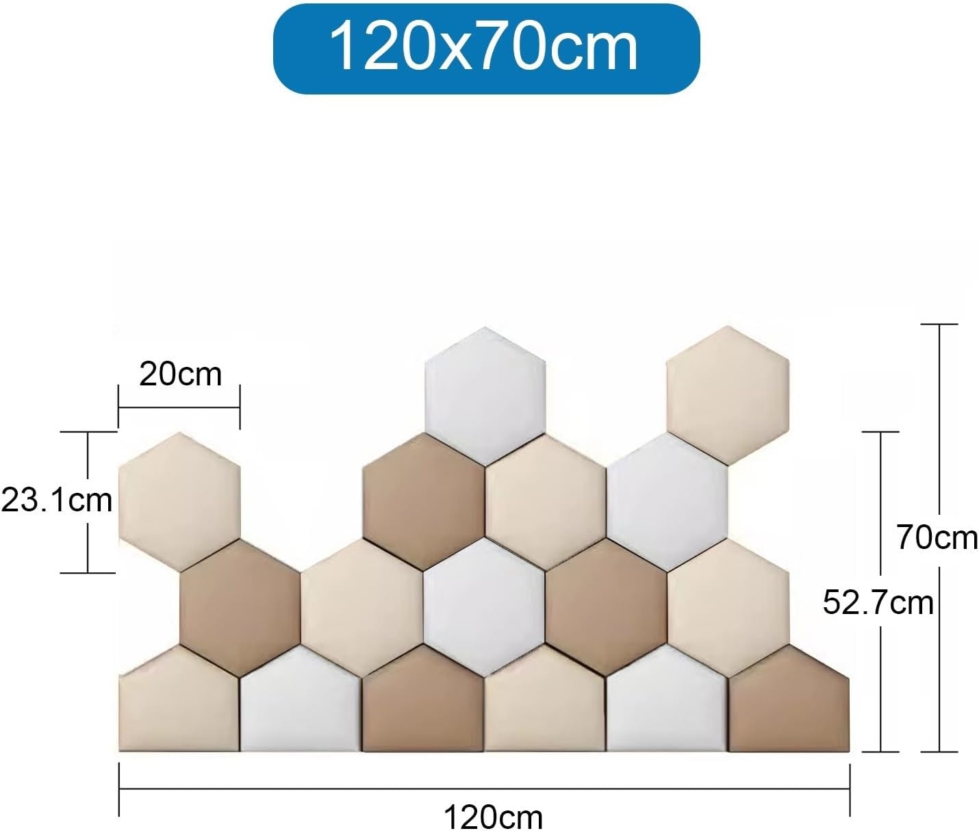 Transform your living space with our versatile wall panels, designed to elevate the aesthetic appeal of any room. Crafted from high-quality comfort technical cloth and filled with high-resilience sponge, these upholstered wall panels not only add style but also provide a soft, cushioned touch. Perfect for living rooms, bedrooms, children's rooms, and hallways, you can easily mix and match our elegant hexagonal panels in a variety of colors to create a personalized and unique decorative display.Our wall panels come in three convenient sizes—120 x 70 cm, 150 x 87 cm, and 180 x 105 cm—each composed of 17 stunning wall panels. The sturdy E0 grade MDF back panel ensures durability, while the 3 cm overall thickness adds a sophisticated touch to your decor.Installation is straightforward: simply plan your desired pattern on a smooth, dry surface free from dust and grease. Use the included self-adhesive tape for easy application, or opt for mounting adhesive for textured walls (sold separately) to ensure a secure fit.Enhance your home with our stylish wall panels and create an inviting atmosphere that reflects your personal taste. Should you have any questions or customization requests, our dedicated customer support team is here to assist you within 12 hours.