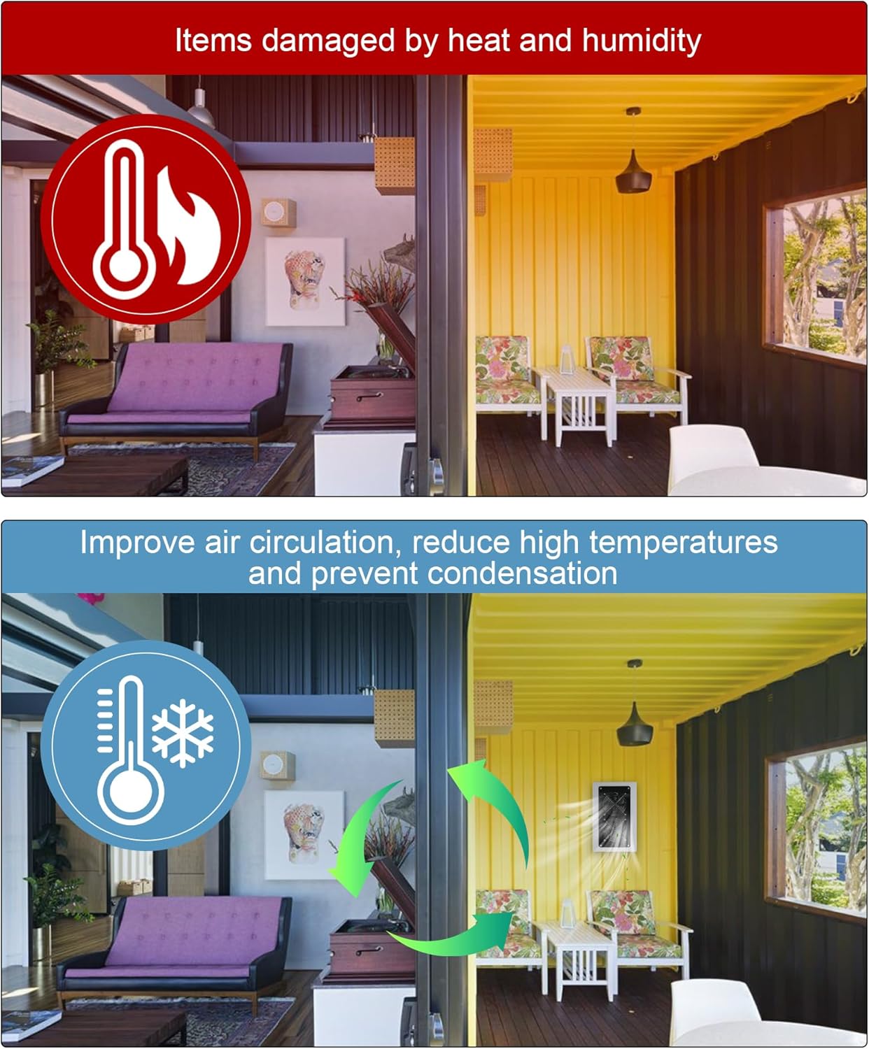 Shipping container vent kit, including shipping container vent and solar panel ventilation,the vent kit exchanges air inside and outside the container, significantly improve airflow within containers, promoting better circulation. This minimizes the temperature difference between the inside and outside of the container, effectively preventing overheating in summer and condensation in winter. Suitable for 20/40-foot containers, container houses, cabins, container offices, gable walls, etc. Shipping container vent are especially suitable for locations requiring long-term operation, low maintenance, and no power supply.