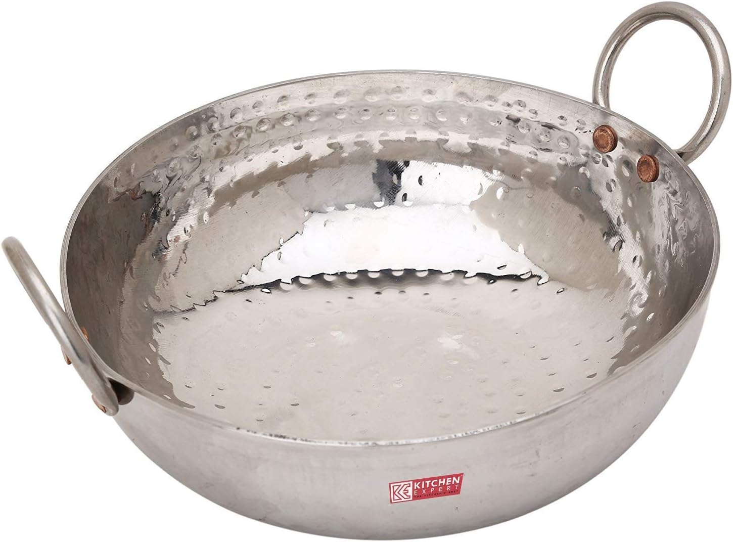 Relish Indian cuisine in Indian style with this cooking & serving utensil set your Indian style dining experience goes several notches up. The material used is food grade. Hammered Steel is used only on the outside of the utensil and does not come in contact with the food. Only the high-quality food-grade stainless steel is in contact with the food. Two layers of metal with air cushion ensure that the food stays warm much longer. Serving dinner in this dinnerware handi would be an unforgettable experience.