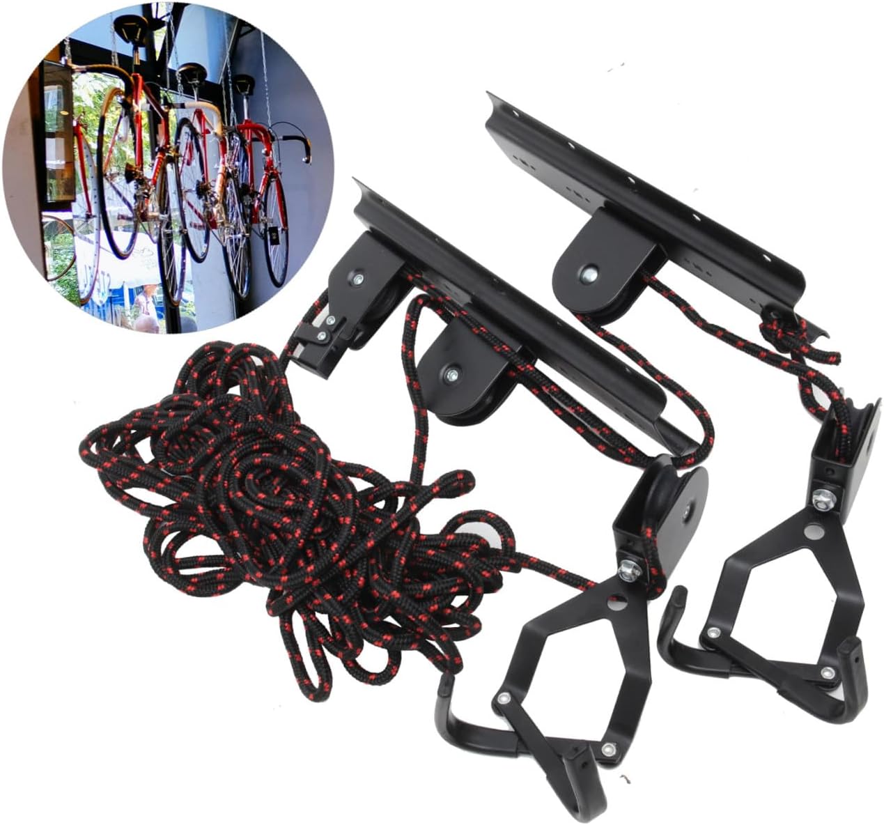 Package List 1 x Set of Bike Hoist Lift Features -Material:Steel, ABS, PP -Size:25.00X8.60X1.00cm/9.82X3.38X0.39in(Fixing Plate) -Note:The rack is black, and the accessory is random color -Product Info:Bicycle crane -Color:Black - Well-made of good and sturdy materials, safe and practical for lasting using time. - For those relatives and friends who love bicycles, wall bike hook is a to make them feel happy wall mount bike hanger - This storage bike hanger is the perfect floor space saver for apartments, homes, garage and sheds bike ceiling mount - Perfect for lots of bike types, including road folding bicycles. The simple texture which can perfect fit your home ceiling hanger. - Keep your garage or indoor space tidy and clutter-free. Store your bicycle horizontally, easy to install bike wall hangersGoods Descriptionbike wall hook This bike hoist lift rack is made of good material, which is safe and easy to use.cycling bike hook This indoor bike storage will be one of the great choices for you to store your bike.bike ceiling mount Detailed workmanship makes this hanging rack have a simple appearance and can play a good stabilizing role