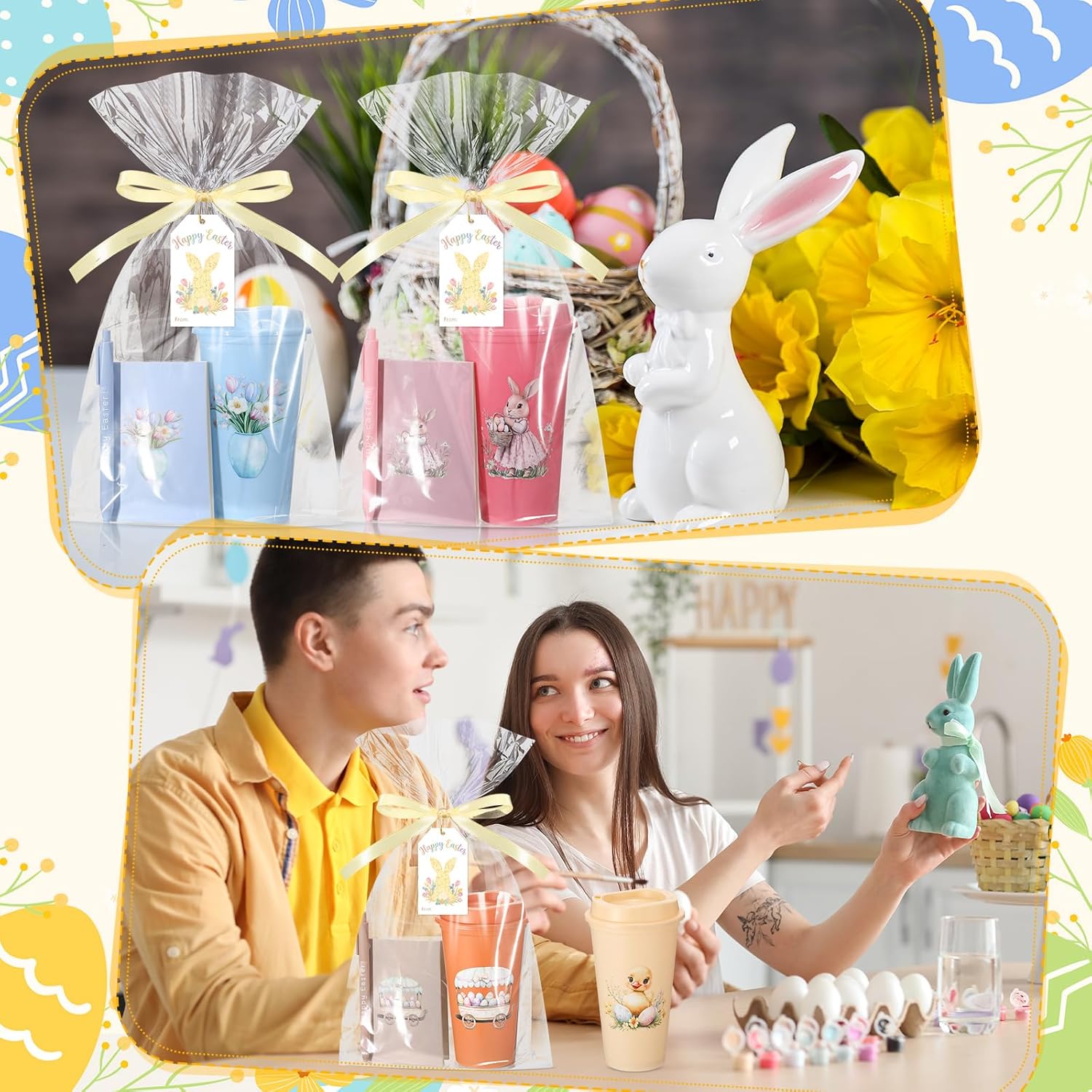 Features: Gift Wrapping The Easter gift kit includes practical accessories like 50 opp bags for organization and a roll of elegant light gold gift ribbon. These additions make packaging favors and gifts from your Easter gift set beautifully simple and convenient Exceptional Value This Easter gift set eliminates multiple purchases by providing cups, stationery, decorations, and wrapping materials together, ensuring you are fully prepared for a memorable and festive holiday Specifications: Material: Coffee cups: plastic Notebooks: paper Size: Coffee cups: about 16 oz Notebooks: about 4.72 x 3.35 inches / 12 x 8.5 cm Cards: about 1.57 x 2.36 inches / 4 x 6 cm Opp bags: about 8.66 x 14.17 inches / 22 x 36 cm Gift ribbon: about 24.06 yard Package includes: 24 x Easter coffee cups 24 x Easter pens 24 x Easter notebooks 24 x Easter cards 30 x Gourd pins 50 x Opp bags 1 x Gift ribbon Notes: Manual measurement, please allow slight errors on size. The color may exist a slight difference due to different screen displays