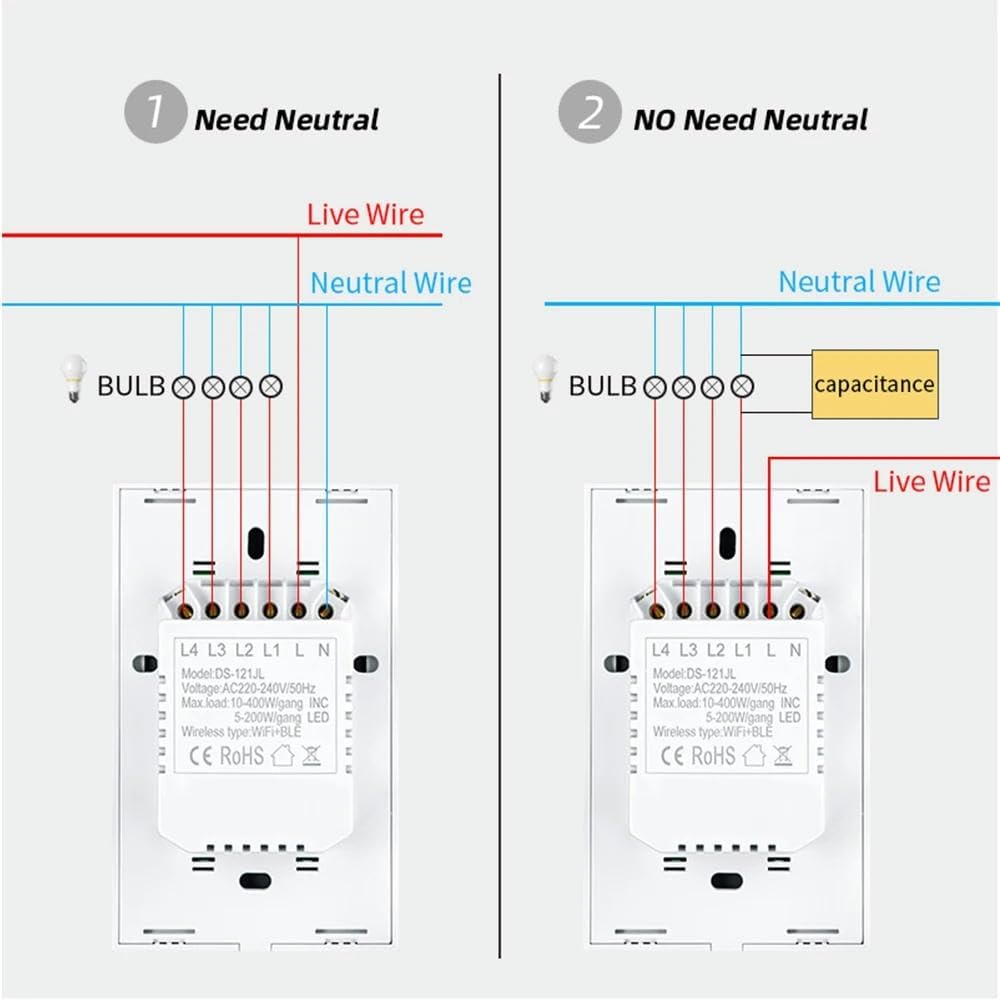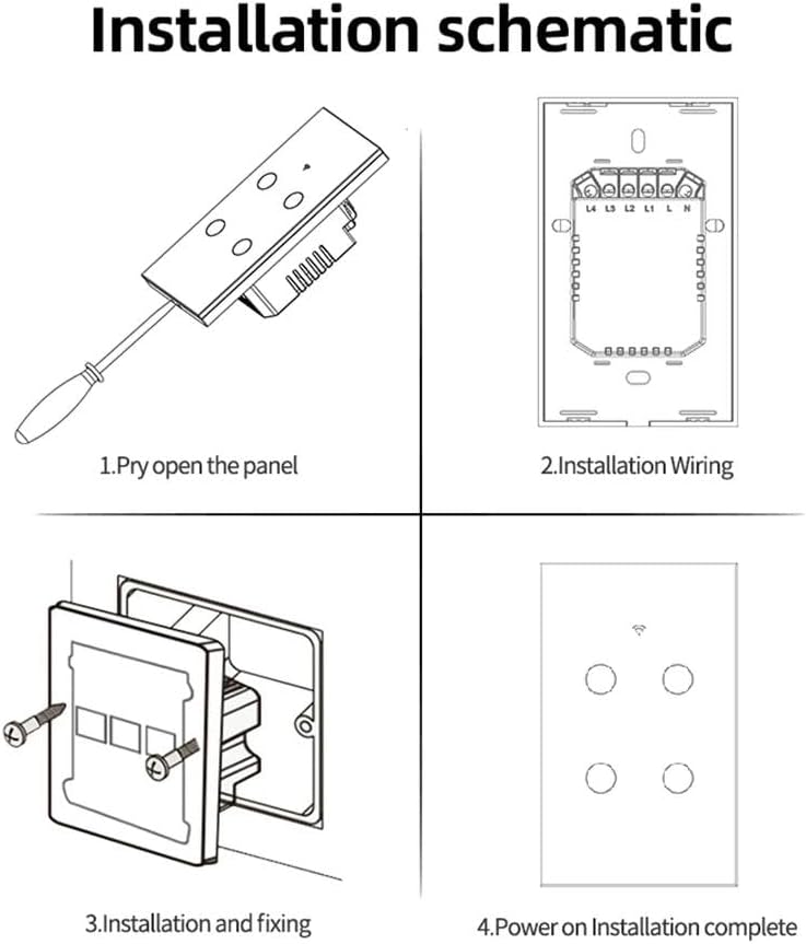 1.App Remote Control:As long as your smart phone or tablet has 4G or WIFI network, you can control your lights by the App "Tuya smart or Smart Life".2.Voice control:Perfectly Compatible with Alexa and Work with Goge Home. Turn on/off lights with voice commands when your hands are full.3.Timer Setting:Setting a schedule or timer on/off your lights on night and morning, and then your will never go back to a dark house when you go back home at dusk. Moreover, you could quietly waked up by scheduled light on every morning.4.Share Function:Sharing devices with your family members to eliminate extra steps for connection.5.Smart Scene:Creating your own scene to trigger ON/OFF home appliances by departure mode, home mode, temperature, humidity, or other environmental conditions.6.Safety and Certification:The wall switch adopts premium materials, such as fire-resistant shell, phosphor bronze connects and advanced PC+TEMPERED GLASS, can provide fire prevention, overload protection to protect your family.7.Our all productscertificated by CE, FCC, and RoHS. Without using any harmful chemical substances, please fell relived about usage.Color: White/BlackMaterial: PC+ Toughened Glass PanelVoltage: 100-250V 50/60HzCurrent: 10ARated Load: 5-600W/GangPower Consumption: ≤0.5WWorking Temperature: 0℃~40℃WIFI Standard: IEEE 802.11bgn 2.4GhzSupport System: Above iOS 8.0 or Android 4.3Hub Requirement: NoNetwork Security: WPA/WPA2"Control Mode: APP/ManualCertification: CE, RoHSAPP: Tuya Smart/Smart Life