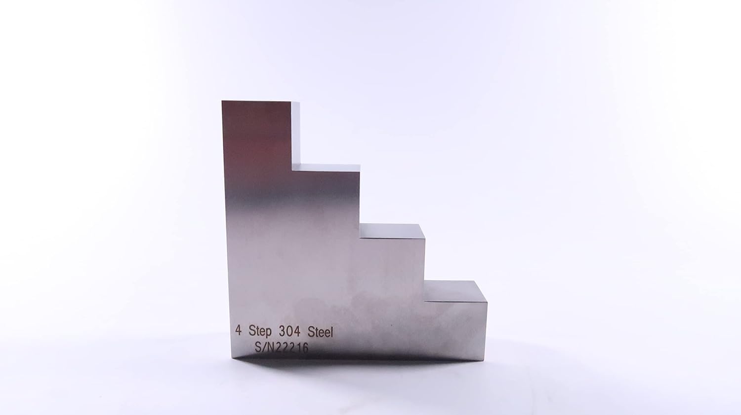4 step 304 stainless steel UT calibration test block 1, 2, 3, 4 Inch step wedgematerial: 304 stainless steelthickness:1, 2, 3, 4, Inchpad size: 1.0X1.0 inchPackage including1 unit Calibration Test Block1 certification1 suitcase