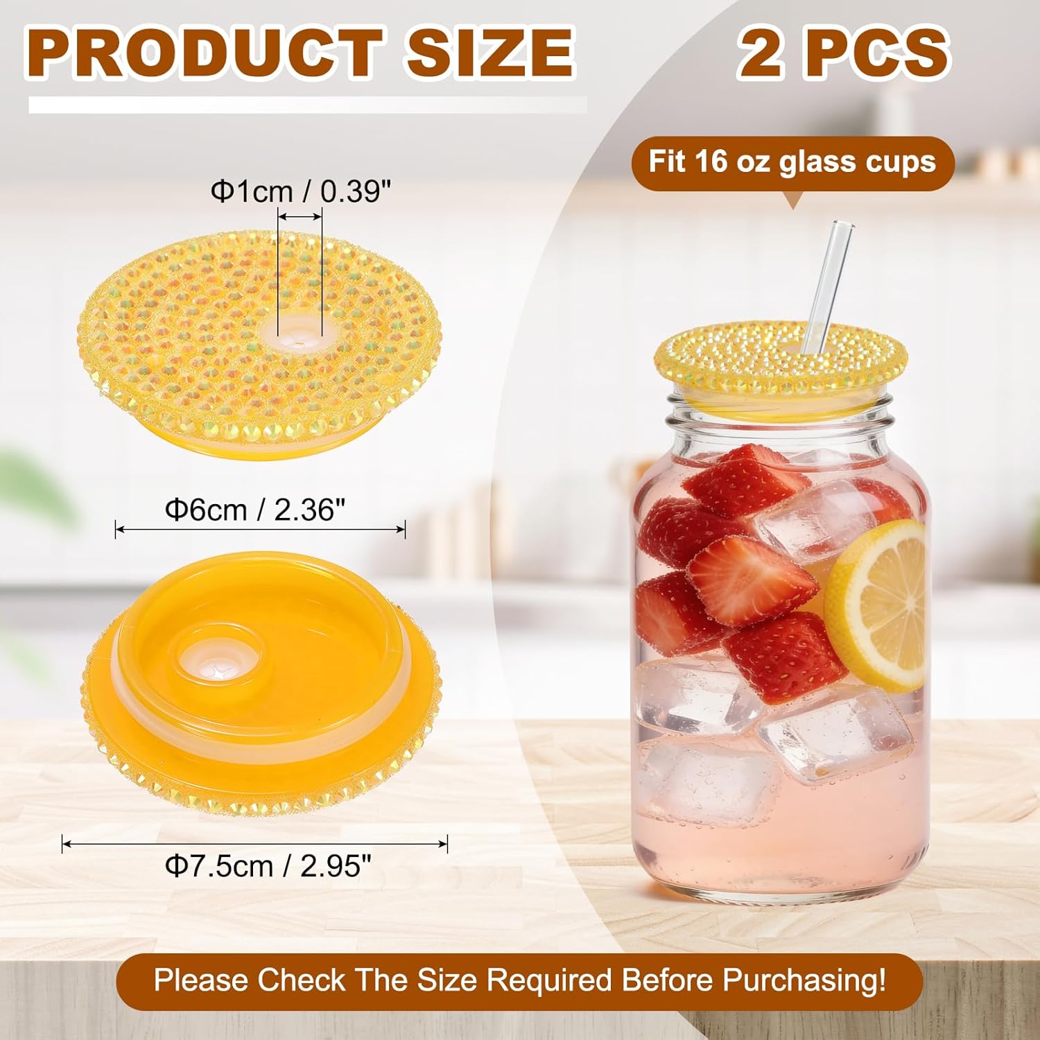 Description:Superior Material: These plastic lids with straw hole are made of durable, wear-resistant plastic with a smooth, easy-to-clean surface. They are reusable and long-lasting.Rhinestone Decoration: The acrylic lids for glass cups are adorned with sparkling rhinestones that maintain their shine for a long time, adding a touch of stylish charm to your cup.Leak-Proof and Practical: These reusable plastic lids feature a silicone sealing ring that prevents liquid from splashing when tilted and also enhancing overall insulation. A straw hole is located in the center of the lid for convenient drinking. They are also easy to disassemble and refill for thorough cleaning.Versatile Applications: These reusable plastic cup lids are versatile and suitable for various 16 oz drinking containers, including glasses, beer cans, water cups, and insulated mugs for coffee, juice, soft drinks, beer, or cocktails. Perfect for home, waiting in line, events, office work, or travel.Specifications:Material: PlasticColor: Dark Orange IridescentLid Size: 7.5 x 6cm / 2.95 x 2.36inch (OD*ID)Straw Hole Diameter: 1cm / 0.39inchPacking List: 2Pcs x Acrylic Lids for Glass Cups