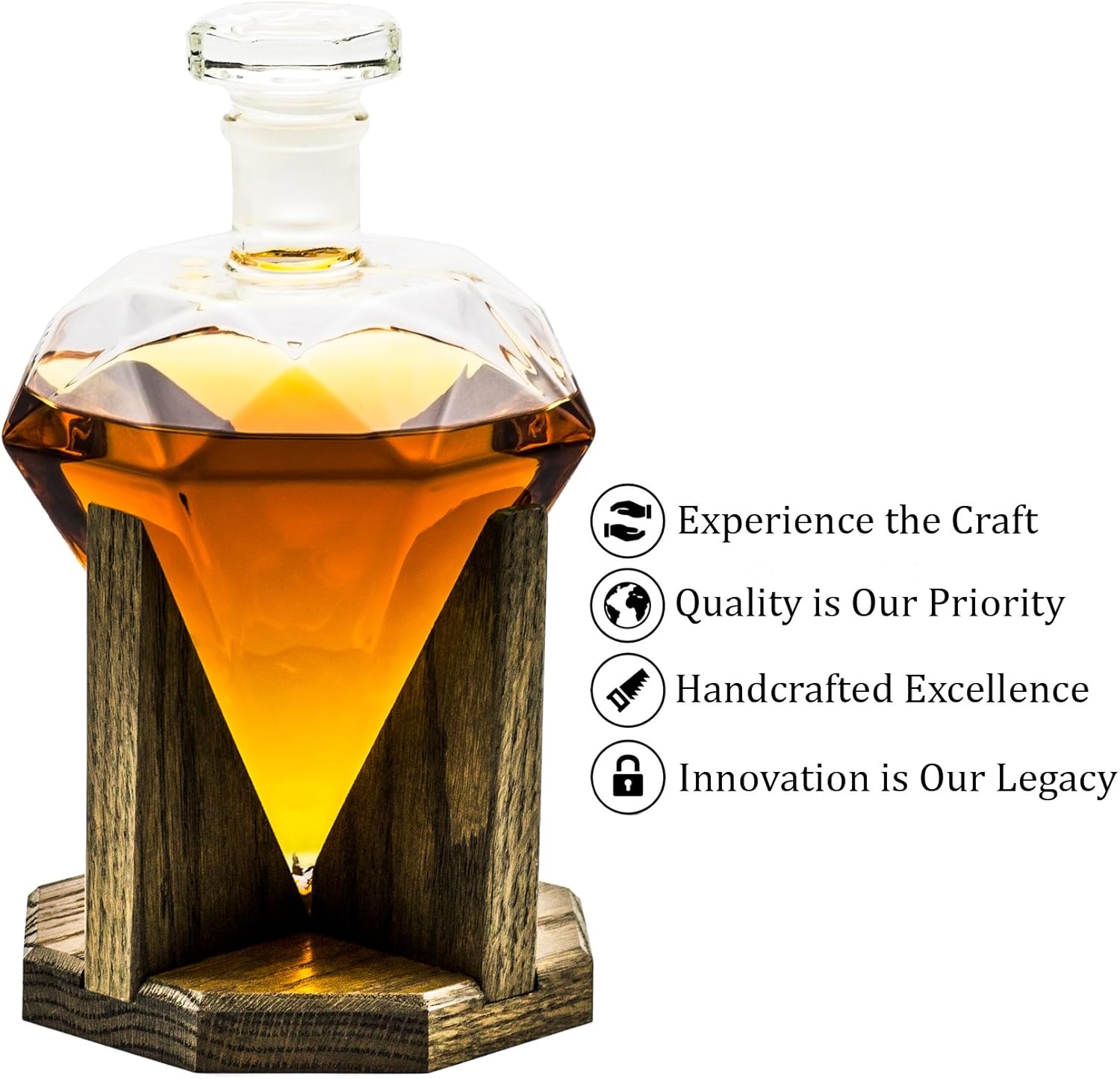 “It’s Exactly What I Wanted… And More!” This is the type of response you’re after when you spend countless hours hunting for that One-Of-A-Kind gift. After all the effort you expended in that process you should expect to hear a lot of enthusiasm for your gift. There’s a gentle essence fine liquor carries into the evening hours. Dim the lights to a warm glow. Draw the curtains. Let the subtle flow of silk tunes wash through your veins. A rhythm and a beat -- a trance you can’t ignore. The world comes alive, and in this moment.. ..you are the host. Reach up into that cabinet and grab your Diamond Decanter. This is a special occasion. It’s one of those nights you wish could last forever. You know it can’t. But that doesn’t mean you can’t eternalize the memory. Breathe life into your party. Tip the diamond back. Watch mouths water as thick liquid pours over twin ice cubes. Sit the decanter back on the counter. Mounted into that solid oak base.. The anchor of a memory. A centerpiece carved in minds..a soirée of the elect. Guaranteed to arrive at your door unsmashed Formed of a heavy, durable, nearly unbreakable glass Holds up to 1000ml of your favorite classy drink A centerpiece they’ll talk about for years to come You want this to be that time they talk about. Give them something to remember. These decanters are made in small batches by master craftsman. So we can only supply a fraction of the demand we have for them. Click ADD TO CART now to ensure that you’ll have one.